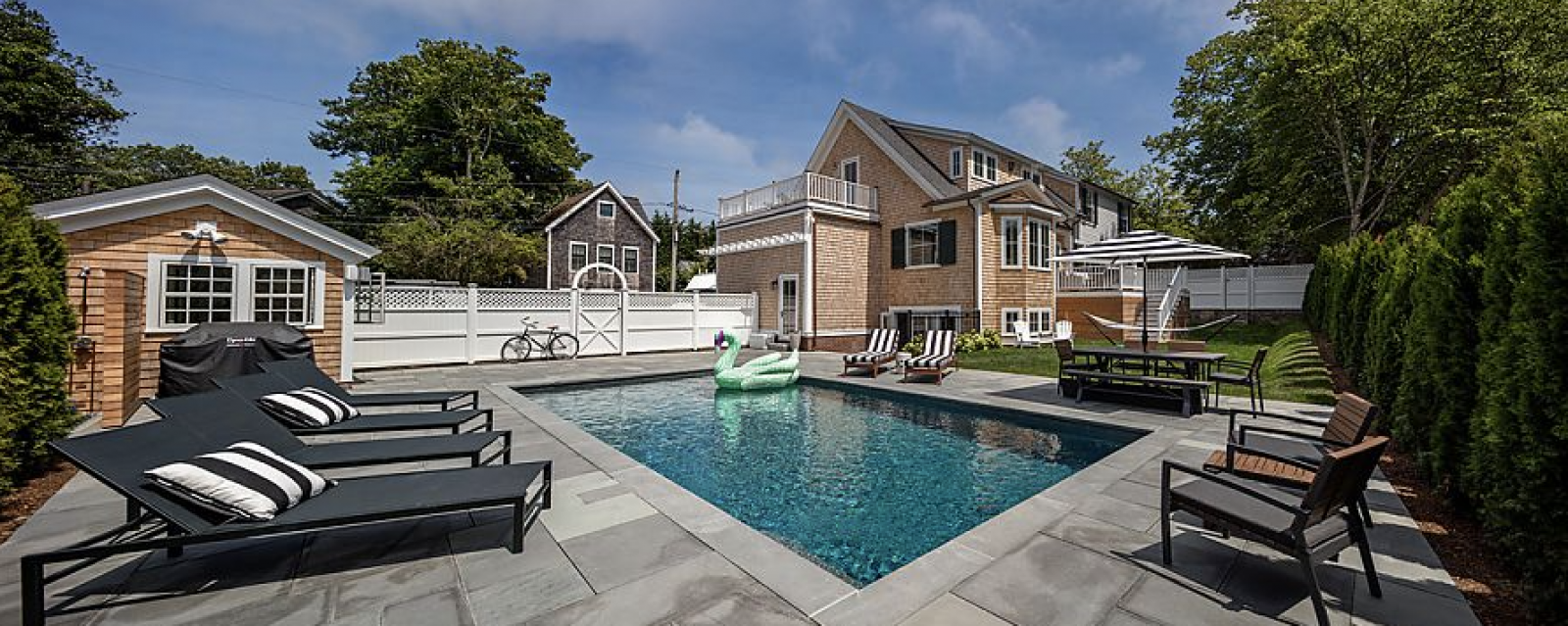 Outstanding Edgartown Vacation Home! This handsomely crafted 5 bedroom home has just been newly painted and all newly and stylishly furnished for family enjoyment. Multiple living spaces flow seamlessly from inside to the sun porch out to the deck and then to the new pool with bluestone patio surround and landscaped grounds. The head of the pool patio surround will be set up with chaise lounge chairs and the deck area overlooking the pool has seating, patio dining and grill area. Learn more about PAILB.