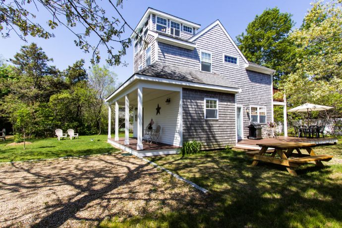 This 3 bedroom, 2 bath immaculate Katama Cape is conveniently located 2 miles to the beach and 1.5 miles to Edgartown Center. Comfortable, bright interior and great yard and deck...Read more
