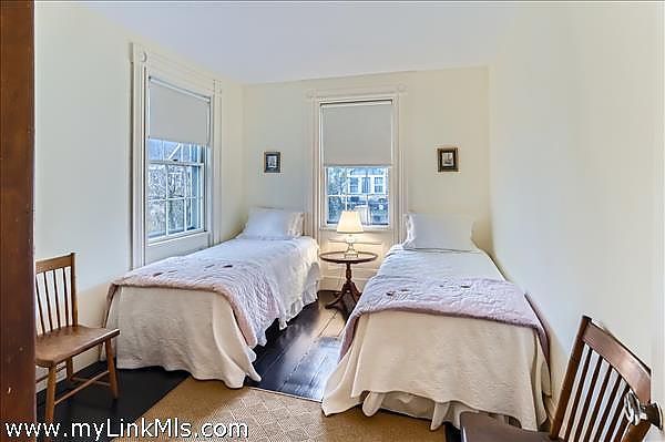 Two of the five bedrooms are on the first floor, including a private ensuite with a full bath. The home is notable for its unusually large and abundant windows, flooding the south-facing interior with natural light. The winding staircase is a sculptural centerpiece that greets you as you enter through the original front door. Renovations include a new roof over the porch, three modernized bathrooms, and updates throughout the first and second floors, all carefully designed to honor the home’s historic charm.
