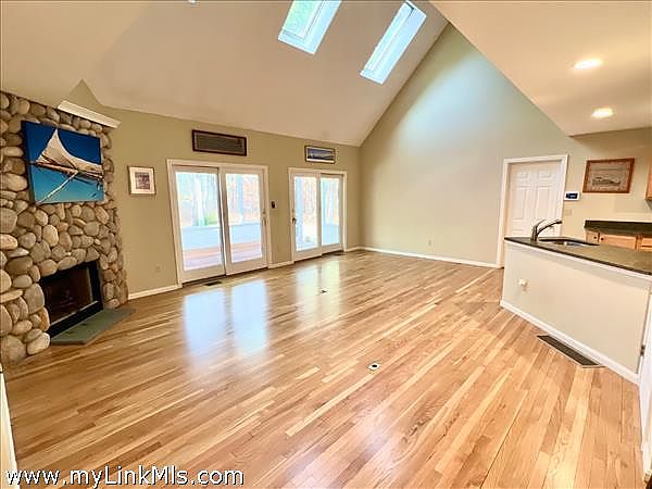Wonderful Tashmoo Wood Association - West Chop. Welcome to this spacious and inviting home in the wonderful Tashmoo Wood Community. Rarely does a Single Family Home come on the market in this Private Association. This four (4) bedroom home, nestled on a private 1 acre lot with a tree lined driveway, abuts common land, is adjacent to Mink Meadows Golf Course and offers the ultimate in the Vineyard lifestyle, a perfect blend of privacy and convenience, with easy access to amenities both in the association and in Town. This four (4) bedroom home - including two (2) large suites, and four (4) bathrooms, - 3 full and 1 half - features an open floor plan with double height cathedral ceilings in the living room with multiple skylights, hardwood floors and a cozy wood-burning fireplace, perfect for relaxing at your Vineyard ‘retreat’. The eat in kitchen flows seamlessly into the dining area and living room which lead to a huge screened porch. Enjoy outdoor living, entertain effortlessly in the oversized screened porch large enough for dining for at least 8 plus additional conversational seating or on the patio with an evening fire, perfect for al fresco dining and entertaining, overlooking common land and Mink Meadows. Two ground floor bedrooms share a bathroom, in addition to the separate powder room, while upstairs, there are two huge bedroom suites with private baths, seating areas and a separate loft for office or computing. Mahogany clad outdoor shower when you return from the Association Pool or Sandy Beach. A finished basement provides additional living space, an entertaining area, media room and storage. Residents enjoy exclusive association amenities including a heated swimming pool, tennis courts, playground, basketball, private dock on Lake Tashmoo and a sandy Association beach on Vineyard Sound. Conveniently located minutes from downtown Vineyard Haven, the Ferry, restaurants, Mink Meadows Golf Club, Vineyard Haven Yacht Club, restaurants, shopping and the Harbor. Spend your days lounging by the heated association pool, playing tennis, or exploring Lake Tashmoo from the private dock with an area to leave kayaks, canoes and small sailboats or swimming off the sandy beach on Vineyard Sound. Easy to show!