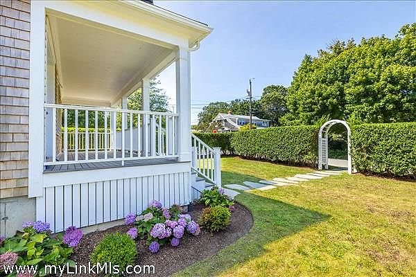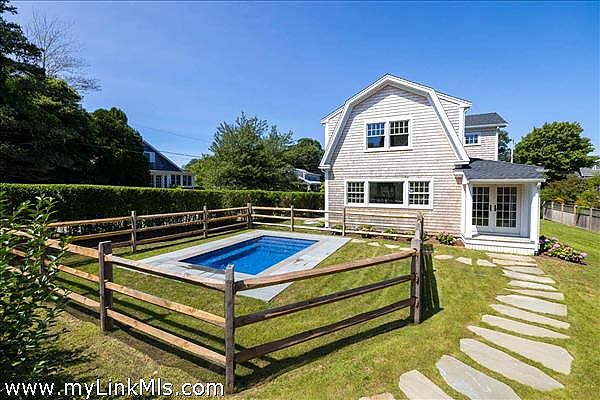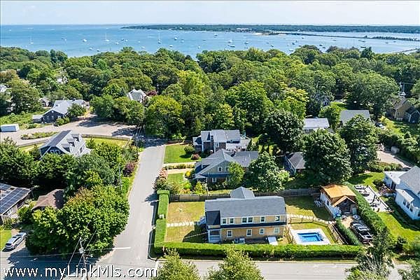 This beautifully renovated gambrel-style home in Vineyard Haven seamlessly blends classic charm with modern luxury. This pristine residence is nestled within a private, hedge-lined yard in one of Vineyard Haven’s most quiet and quaint neighborhoods. With the new heated salt-water pool, outdoor shower, lovely plantings, and beautiful gardens, no detail has been overlooked. The property also features a renovated garage with an unfinished second level, perfect for a creative studio. Inside, the home exudes warmth and elegance, with wide pine flooring, custom craftsmanship, and intricate wood detailing on the ceilings. The spacious living room, centered around a gas fireplace, is both inviting and stylish. The sunlit kitchen, equipped with top-of-the-line appliances and refined finishes, includes a cozy window seat that adds to its charm. The primary bedroom suite offers a serene retreat, complete with a private tile bath and access to a 2nd-floor deck. The three additional bedrooms are equally comfortable and well-appointed, providing ample space for guests. The finished lower level expands your living space further, ideal for a home theater, gym, or playroom. Spend your days soaking in this privacy that this tranquil abode provides, or take advantage of its ideal location to access the hustle and bustle of downtown Vineyard Haven where you can enjoy various galleries, shops, and fine dining. This location is also convenient to Owen Park Beach, West Chop and Mink Meadows Golf Club.