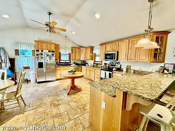 Oak Bluffs location that is central to everything down Island. Situated on a 1/3 acre lot this ranch home with a finished basement has been recently renovated. The first floor has 1500 sq feet with of a large open kitchen, dining area, and living room with plenty of room for large gatherings. The primary bedroom has a bathroom on suite. Another bedroom has easy access to the hall bath. The basement with over 1100 square feet of addition finished space could have a third bedroom if you install the correct window in compliance for a bedroom. Presently there is a 3 bedroom septic installed. The large yard has a lot of potential. Close to the Oak Bluffs school and town center.