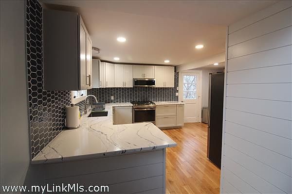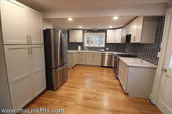 Located near the Lagoon, hiking trails, downtown Vineyard Haven, and Steamship Authority. A private wooded sanctuary sited on 1.5 acres of land with backyard covered patio, covered front porch and new mahogany deck railings at each entry. Many recent updates include hardwood floors on the first floor, remodeled bathrooms, kitchen cabinets and countertops, baseboard trim, baseboard heat and painting throughout. New roof installed in 2023. Large propane monitor in the living room to supplement the new baseboard electric heat. With a propane heat monitor and two storage rooms on the lower-level, this is a perfect space to be finished off and expand your living area. French doors from the walkout basement lead to the driveway. Many renovations have been completed and awaiting your finishing touches. Septic has conditional pass and will need to be upgraded to a nitrogen reduction system due to proximity to the Lagoon. Seller paying for the new Title V system design. House is vacant and easy to show.