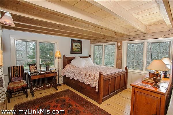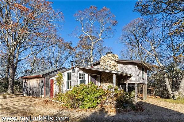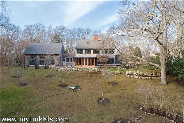 You will find this outstanding property at the end of a quiet country lane in West Tisbury nestled alongside hundreds of acres of conservation land and walking trails that extend all the way to Lamberts Cove Road. The setting is magical - 4 acres of rolling lawns with specimen trees and ponds. There are multiple structures to allow you to customize this compound to your personal needs. The main house was recently renovated by a top local contractor and the result is a rustic Vineyard vibe with a sophisticated twist. The cozy and comfortable kitchen and sitting room areas lead to the dramatic Great Room on the north end of the house - the 600 square foot space with its 26’-high ceilings is bathed in light thanks to the banks of windows and French doors. There are two bedroom suites upstairs with views of the main pond, one of them with a sundeck. The third floor loft area has also been used as a bedroom and is the perfect spot to accommodate younger members of the family and their friends. The detached two-story guest quarters continue the Vineyard country chic theme with a delightful bedroom with veranda overlooking a separate area of the property from the main house. In addition to the main house and detached guest bedroom, there is a barn with a large finished room and loft as well as a secluded writing studio. A new garage completes the compound. Note: Four-bedroom septic in place. Property currently has 3 bedrooms plus 1 loft sleeping space. One more legal bedroom may be added. *New in season imagery coming in June.