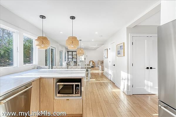 Welcome to a stunning blend of contemporary elegance and charm nestled in the heart of Edgartown. This exquisite water view residence offers 3 spacious bedrooms and 4 luxurious bathrooms, encompassing a generous amount of meticulously designed living space.