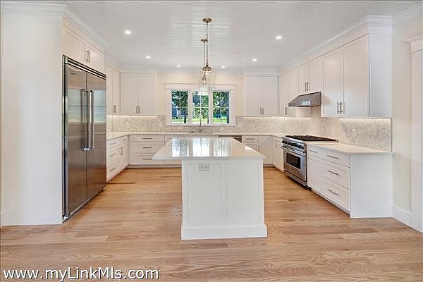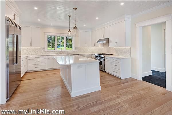 Welcome to this NEWLY CONSTRUCTED gorgeous gambrel home with a POOL that is close to SOUTH BEACH and EDGARTOWN VILLAGE! This home sits upon a flat, beautiful parcel of land with mature trees. The facade of the home presents an inviting covered porch with free standing columns, a granite entry step, mahogany decking and shiplapped ceiling. Attention to architectural detail presents at moment one. The welcoming expansive entry foyer presents your eye with an oversized lounge area to the right and a spectacular great room ahead. The great room offers a soaring cathedral ceiling and a rear wall of two story windows with a gas fireplace that is wrapped with a shiplap surround, very stunning! The great room opens to the dining room which features a wall of sliding glass doors overlooking the outdoor entertaining and pool area. The dining room flows into the large gourmet kitchen which features a kitchen island that can seat four. From the dining and kitchen area there is easy access to the smartly designed mudroom which offers a half bath, large pantry, and laundry area. Off the mudroom area is a large outdoor shower with quick access to the heated saltwater pool. The plot offers five bedrooms, four of which are being built. The first floor hosts the primary bedroom with a luxurious bathroom featuring a soaking tub, oversized tile and glass shower, a two sink vanity and a private toilet area. Three custom built closets are found in this primary bedroom en-suite offering plenty of storage, a closet for linens, a closet for accessories and an oversized walk-in closet. The second floor offers three guest rooms and two large luxurious bathrooms, one with a soaking tub, both with glamorous showers. The exterior of the home, with its mature trees, cobblestone and pea stone driveway show off the homes architecture and is framed by its landscape. In the rear yard you experience privacy in the 14 x 30 ft. salt water heated pool that is surrounded by bluestone and professional landscaping. From the dining area, the mudroom and first floor primary bedroom you can access the rear yard onto a custom built deck, all overlooking the private pool area. A very wise and welcoming design! The plot can support a future garage and guest house. The home is currently under construction, to be completed by March 1st of 2026. Photo’s are of a similar home that was built.