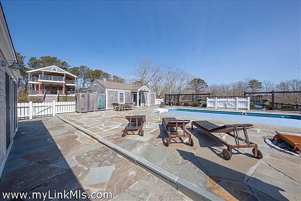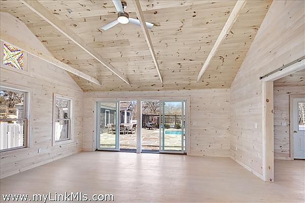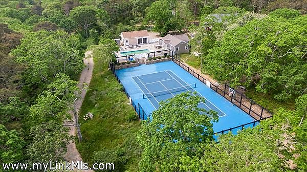 The fun Pool House sports a wooden beamed cathedral ceiling with a large open lounge area, kitchenette and bath, overlooking the Pool and Workout & Game Barn. The interplay between the Workout & Game Barn, Pool House, Pool and abutting Tennis and Pickleball Courts makes this Chappy Compound fun and playful! Strong Rental History.