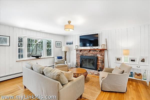 TURNKEY IN KATAMA. This house is ready earning rental income right away. OWNER FINANCING POSSIBLE. This house lives large and you will be surprised once you see the interior. Nestled in the heart of Katama, on a quiet sandy road, This charming home offers 1,232 square feet of cozy living space, and an extra 520-sf of finished lower level living space. POOL- lots of sunny rear yard perfect for a pool and the existing (Title 5 passed) septic is not in the way. House faces 201 degrees South. Located on a generous 16,552 square foot lot. This home is offered "turn key" move in or rent out ready. ( 1 exception Dining Rm Table) Step inside to discover an open living and dining area, complete with an original wood-burning fireplace and a delightful bow window that fills the space with natural light. Oak floors throughout this home. The kitchen boasts stainless steel appliances & sleek stone counters and opens onto a deck that leads to your private backyard—perfect for summer barbecues or a quiet morning coffee. The primary bedroom features a full en-suite bath, while two additional bedrooms share a separate full bath. Wood floors and paneling add warmth and character throughout the home, and central air ensures comfort on those hot summer beach days. Recent updates include a freshly painted interior in 2025, a new roof in 2022, and renovated baths with new fixtures in 2015. The finished 520-sf basement, completed in 2019, offers a fantastic space to watch the game or get some work done using the space as a home office. Located just a short bike ride to the Katama Kitchen, Katama Airpark Diner and beautiful South Beach. This beach home is perfectly positioned for enjoying all that that the Katama/Edgartown area has to offer. Just a 10 minute bike ride or a 5-minute drive to Edgartown's vibrant main street. This is a fantastic opportunity for both year-round living or rental income (rental history available). Don't miss out on this gem in a neighborhood of beautifully renovated homes. Town water runs in front of this property on Knoll Drive. Possible expansion of an additional bedroom with upgraded septic & town water. Edgartown approvals would be necessary. Title 5 passed on the existing Septic.