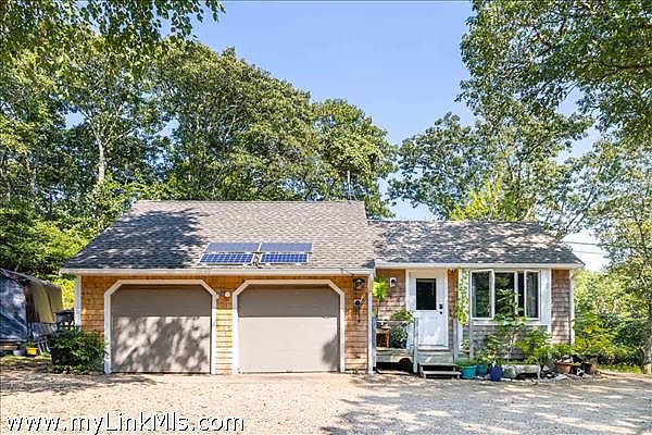 Abutting hundreds of acres of conservation land and walking trails leading to the second-highest point on Martha's Vineyard with views of the Elizabeth Islands, this classically-styled house with detached guest quarters offers 5 total bedrooms and 4 full baths plus an outdoor shower. The primary bedroom suite is a generous size and has its own small deck that overlooks the charming front yard. The property feels quintessentially Chilmark with ancient stone walls and mature plantings. The detached guest quarters features a spacious bedroom, full bath, kitchenette eating area, and a garage. Menemsha Hills Reservation is your backyard - 211 acres described by its Trustees as follows: "Menemsha Hills was shaped by thousands of years of glacial advance and retreat. Today an array of mini-environments comprise a rugged, pleasant landscape: low wetlands, woodland groves leading to a hilltop, wind-blasted coastal plains, a rocky ocean edge, and 308-foot Prospect Hill." Not to mention - Menemsha sunsets are a short distance away!
