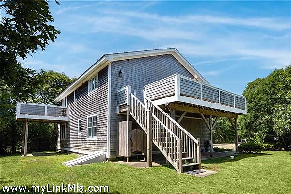COASTAL RETREAT IN KATAMA. Located in the heart of Katama, with the iconic Katama Airfield and the sandy shores of South Beach nearby, this contemporary coastal retreat is ideal for enjoying all the best of Katama. The reverse-style contemporary features a sunny, open-designed floor plan with vaulted ceilings that seamlessly combine an inviting Living Room with gas fireplace, a Game Room with custom built-ins, a spacious Dining Room with seating for eight -- plus an attractive cook's Kitchen with stainless appliances, granite counters and counter seating. The living space opens onto two second-story decks that are ideal for entertaining or relaxation, which enjoy sounds of the ocean and gentle summer breezes. The property is being offered furnished, providing a turnkey opportunity and seamless move-in experience. This property not only offers an exceptional living experience but also includes a solid rental history and $60,000+ in current gross rentals for Summer 2025 -- plus available peak weeks for a buyer to rent OR use themselves. Make this coastal gem your own and enjoy the unique Katama lifestyle that it offers.