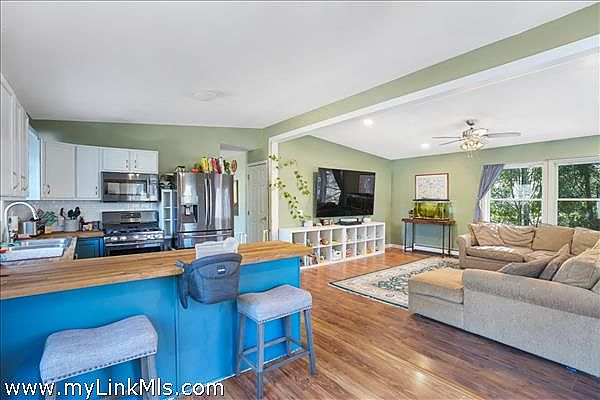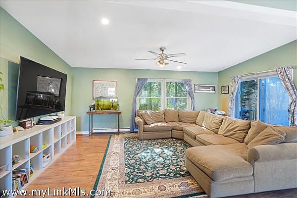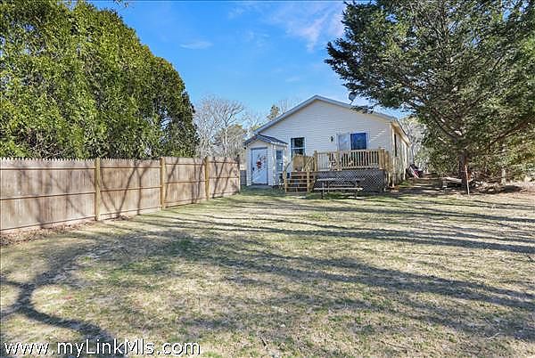 Close to downtown Edgartown, yet far enough away to be in a residential location with a nice yard, this home is a must-see! This is a ranch style home with two bedrooms and two bathrooms, plus an office. Open concept for the living, dining and kitchen area with a slider to the back deck. With a few updates and finishing touches, this could transform into your perfect family home. It is being sold “As-Is.” New septic installed September 2023, and a new heating system installed January 2023. This property also has a full basement that is partially finished. Please note that there is a shared driveway entrance from Edgartown/VH road. This home has space for two cars to park.