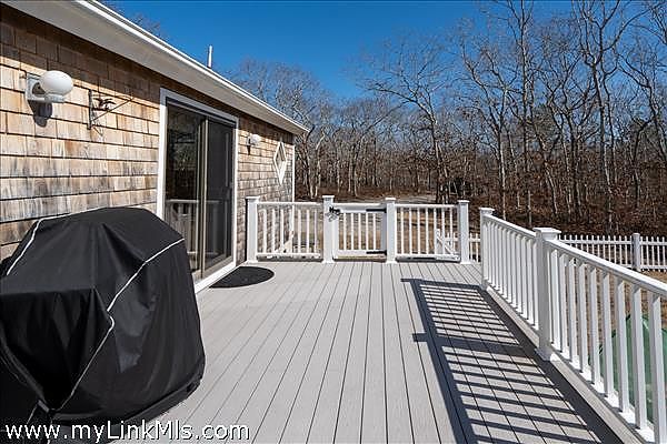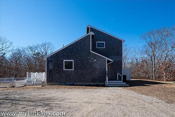 This coastal contemporary residence is located on a private 1.60-acre lot in WestTisbury, with convenient access to Long Point Wildlife Refuge. The home features four bedrooms and two full bathrooms. On the first floor, you'll find two bright bedrooms, a modernized bathroom, and sliders from the living area that lead to a new AZEK deck and enclosed fenced gardens, perfect for outdoor enjoyment. The open floor plan includes attractive beadboard ceilings that create a sense of space and light. Recent upgrades feature a remodeled kitchen with a tiled backsplash, granite countertops, and an LG induction stove along with matching stainless-steel appliances. The first-floor bathroom has been fully renovated with a tiled shower and glass door, tiled floor, new toilet, vanity/mirror, rainfall showerhead and all new hardware. Additional updates include a newer roof, Azek window trim, an outdoor shower enclosure, and gutters with leaf guards. The basement has a 9-foot ceiling with four windows, providing potential for further finishing with town approval. Other improvements include updated plumbing and electrical systems, a new well pressure tank, new Culligan Water Filtration and Conditioning system, and a Generac whole-house generator installed in 2022. Partially furnished and with additional updates available in the documents, this property is well cared for and ready for new owners. Potential to be a STRONG RENTAL PROPERTY. Title 5 Inspection Report in documents.