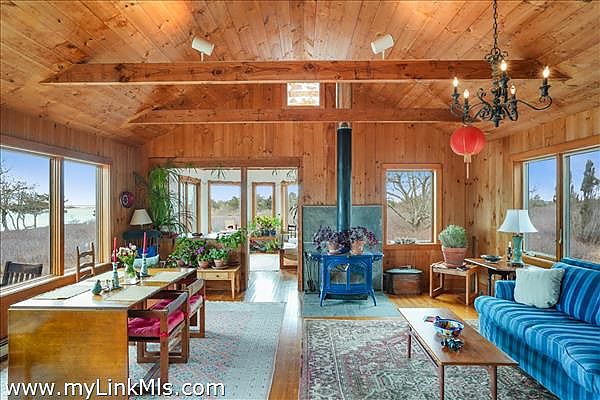 The year-round main house spans 2,153 square feet and has three bedrooms and two bathrooms. Its seamless blend of Island charm and modern convenience ensures you enjoy all the comforts of home while living sustainably year-round with an off-grid energy system. The property includes a classic two-bedroom summer camp with its own separate driveway and short path to the pond, giving guests their own slice of paradise.