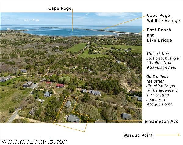 A home for all seasons and multiple purposes --- If you choose to have a comfortable, kick-your-shoes-off, not-fussy, beach home on the tranquil, non-commercial island of Chappaquiddick, then this is your destination. The fabulous, pristine, seemingly endless miles of shoreline at East Beach, just over Dike Bridge, is only 1.3 miles distant. The gorgeous beaches at Wasque Point, where you also find some of the finest surf casting on the east coast, are only 2.1 miles away and the 30.6 acre MV Land Bank Quammox preserve with its small boat landing on Katama Bay is only 9/10 mile from the property. Chappaquiddick is crisscrossed with walking trails, two of which are a short distance from the front door. If your goal is to establish a firmer, year-round foothold on this idyllic, pastoral island, two ferries removed from the stresses and uncertainty of the modern world, then this can also be your destination. It is currently the home of a well-known fine artist with an impressive studio and a boat builder specializing in small wooden boats with an equally impressive workshop in an adjacent building. The year-round Chappaquiddick community embraces its residents with many neighborhood functions and activities that create a tapestry of connections that make life there very pleasant at all times of the year. Whatever your purpose, this 3 bedroom, 2 bathroom, 2,046 square foot home, situated on almost a half-acre of easily maintained lawns and colorful, natural gardens, offers a great platform for your exciting future.
