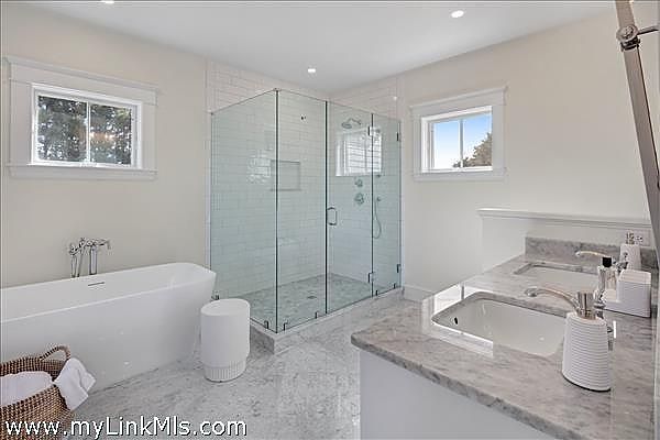 NEWER CONSTRUCTION, with POOL, 1/2 mile from the heart of EDGARTOWN VILLAGE! LOCATION, LOCATION! Approx. 3,500 square feet of open living space. The Great Room has a dramatic Two Story wall of windows which surround a gas fireplace and overlooks a 14 x 30 foot in ground, heated, saltwater pool which is surrounded by bluestone hardscape. In addition to the dramatic Great Room there is a first floor study, a first floor primary-en-suite, a mud room and separate laundry area. The Gourmet Kitchen, with it’s central island, opens to the dining room which flows into the Great Room. The second floor offers a second primary-en-suite, as well as two additional guest bedrooms which share a full bath. The plot can have up to SIX BEDROOMS, a future guest house and/or a future detached bedroom. The home comes partially furnished. Stellar location, only a 1/2 mile to the heart of Edgartown Village. The property is also close to the Library, Girls/Boys Club, public tennis courts, public playscape and the bike path.