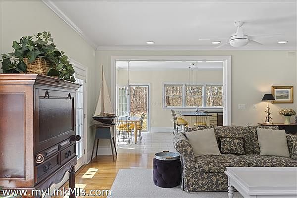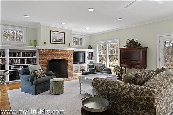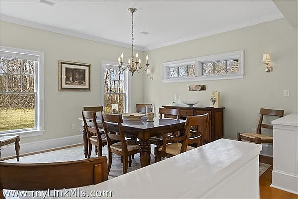 Beach access, a serene up-island setting and a terrific home make this property a must see! Situated on three acres of land just a half mile from the beach, the spacious, well-laid out and meticulously maintained home is the perfect place to relax and unwind and host family and friends. With over 3,200sf of living space that includes four bedrooms, four baths, an open concept kitchen, dining area and great room, formal dining room with butler’s pantry, a dedicated home office, laundry room, three car garage, outdoor decks, manicured lawn and private woodland, this property truly has it all. While the location affords great privacy, the shops, galleries, and restaurants in Vineyard Haven are conveniently just 3.5 miles away.
