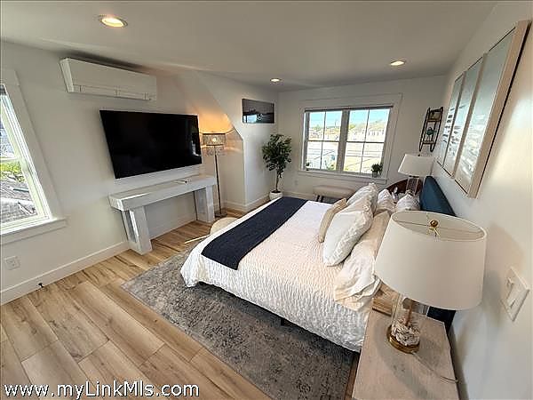 The modern kitchen and bathrooms feature elegant quartz countertops, while tile showers with custom glass enclosures add a touch of luxury. Each bedroom includes spacious walk-in closets and enjoys an abundance of natural light. Upstairs bedrooms also offer scenic views of the harbor and downtown.