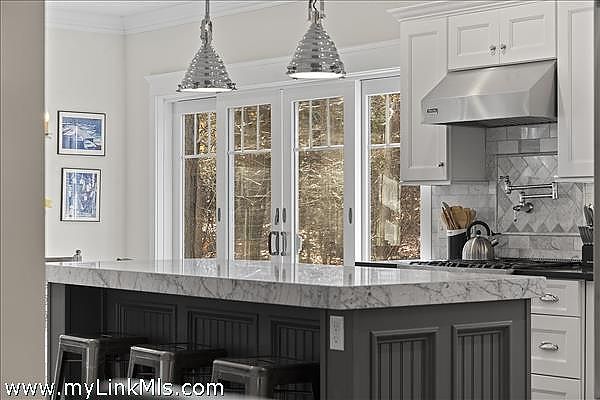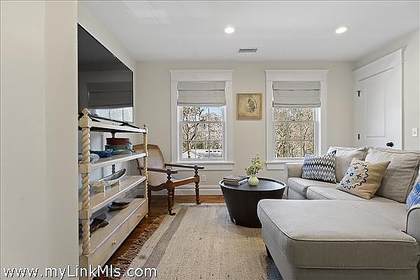 Experience the ultimate Vineyard getaway in this custom Colonial that perfectly balances sophistication with Island charm. This thoughtfully designed property features soaring 9-foot ceilings, authentic Heart Pine flooring, and a show-stopping gourmet kitchen complete with professional-grade Viking appliances, handcrafted soapstone countertops, and a statement Carrara marble island. The spacious floor plan offers four bedrooms and four full bathrooms, complemented by two powder rooms and a fully finished lower level for additional entertainment. Separate guest quarters above the garage provide visitors with their own private retreat, featuring a dedicated living room, convenient wet bar, and private deck. Outdoors, a mahogany deck overlooks beautifully landscaped gardens, with an outdoor shower perfect for post-beach rinses before alfresco dining under the stars. Conveniently located just a short distance from downtown Edgartown's acclaimed restaurants, boutiques, and harbor, this property offers a quintessential Vineyard experience and an established rental history.