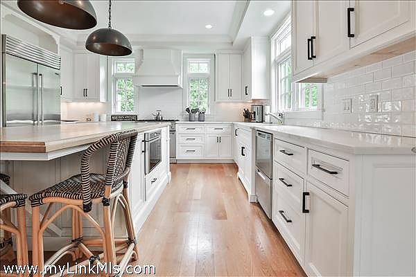 This stately Greek Revival home lies on beautiful Fuller Street and a short walk to the beach. This 5-bedroom / 5.5-bath home features a beautiful foyer with arches and paneling leading past a grand staircase to a beautiful family room, kitchen and screened porch overlooking the backyard. There is an ensuite ground first floor bedroom and office off the hall as well as a side mudroom entry and interior access to the one-car garage. The second-floor features three bedrooms, two of which share a bath, laundry room in addition to a large primary bedroom with fireplace, luxurious bath and walk in closet. The 3rd floor offers a large room with water views that could be used for a number of purposes, with a full bath. The lower level offers a TV sitting room, large gym with wet bar, a second laundry room and door to exterior pool area. The rear yard offers a built in grill, swimming pool and pool house complimenting the nicely landscaped grounds, 2-car brick parking area and all located just a short walk to Fuller Street beach, the harbor and downtown.