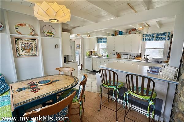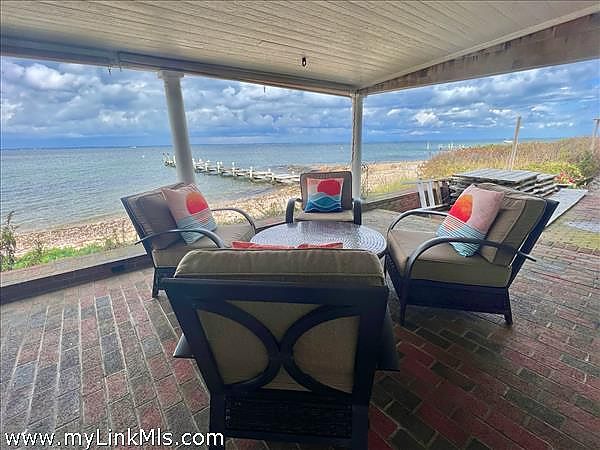 This classic East Chop Drive gem lies on a 10,000 sq. ft. lot nestled in the sand dunes, just steps to the waters edge and private dock. The 4-bedroom/2.5-bath cottage went through a substantial renovation years ago with the majority of mechanicals, electrical and plumbing being updated. There is an open floor plan with kitchen, dining and living space with cathedral ceiling and wood burning fireplace. There is a ground floor master with private bath and lots of glass, a second bedroom with half bath and laundry/mudroom. The second-floor features 2-bedrooms and a shared bath. The cottage style structure is super charming inside and out and has a wonderful water facing brick terrace with built-in planter, a covered porch and a one-car garage. Beautiful landscaping with lawns and gardens complete this very special property. Let's not forget to mention, it offers some of the best seats on the Island to take in the incredible sunsets.