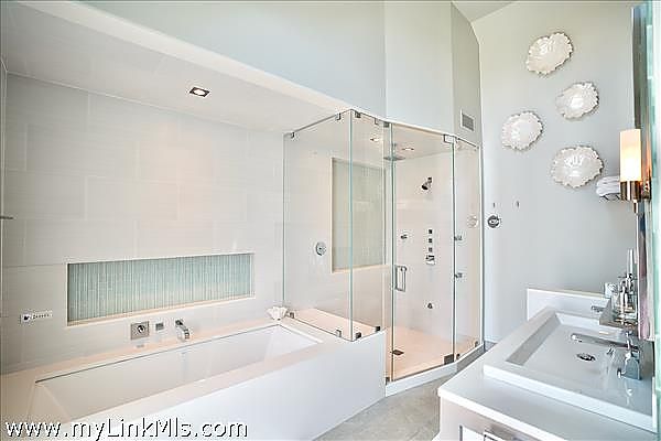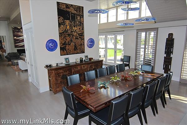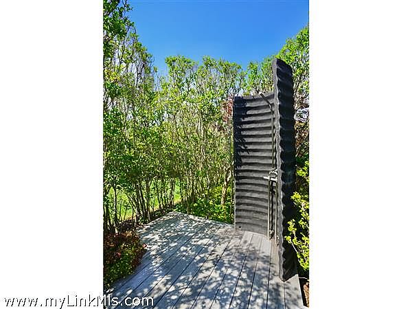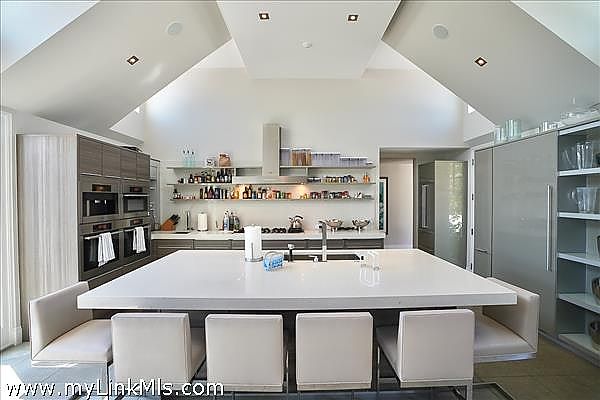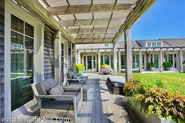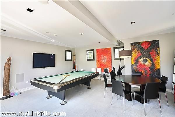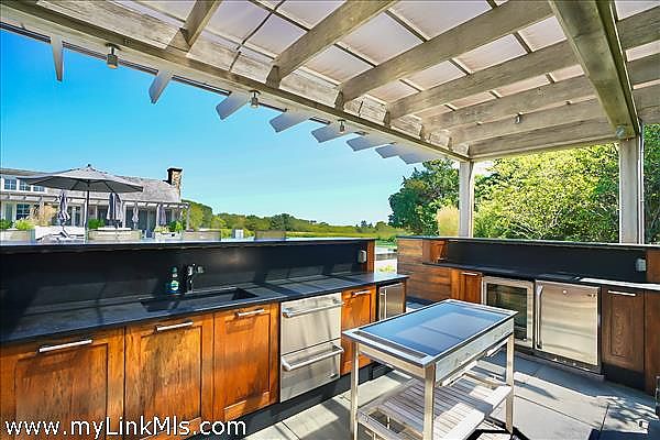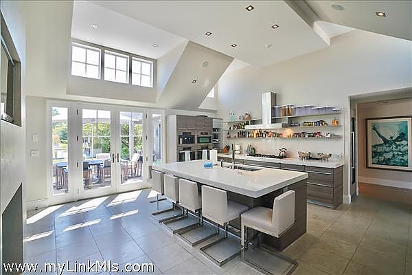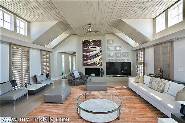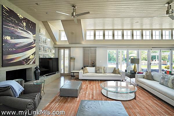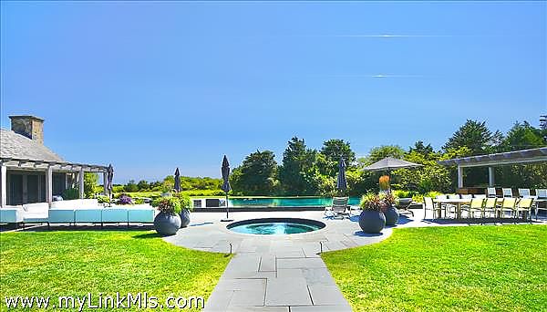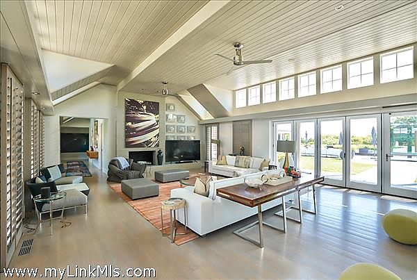 This dramatic contemporary styled house lies on 6.5-acres of beautiful pond front land in the exclusive Herring Creek Farm. The home features cathedral ceilings throughout and an open floor plan with large living room, dining room and kitchen, all with clear story light, fireplaces and 20 ft. breakaway Nana walls. The spiral staircase leads from the living room to a large roof deck with expansive views of the South Shore. There are 5 suites all with luxurious bathrooms, closets, and private garden terraces. Additionally, there is an attached carriage house with 3 additional bedrooms, a billiards room and exercise room. The grounds offer a large, stunning pool, a 12 person Jacuzzi, outdoor kitchen, and parking courtyard. There is a high level of finish throughout, a whole house Lutron control system and advanced audio/video. Herring Creek Farm offers direct access to private South Shore beach and over 150 acres of conserved land.