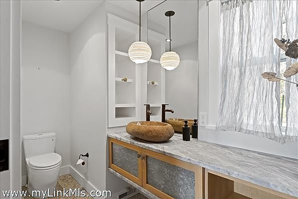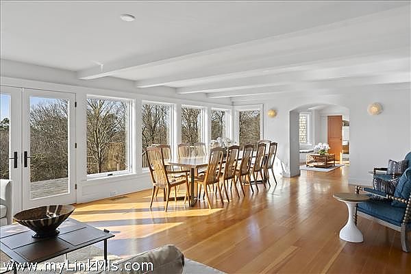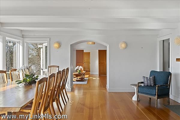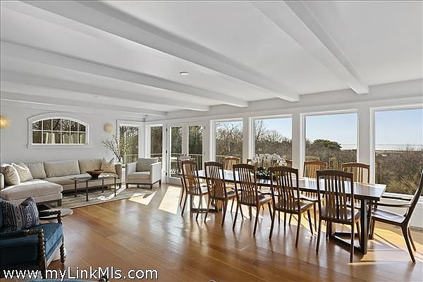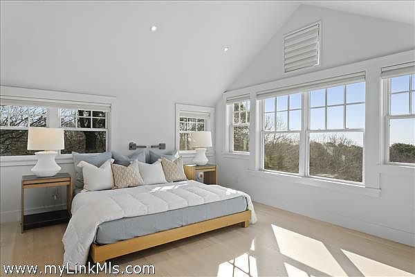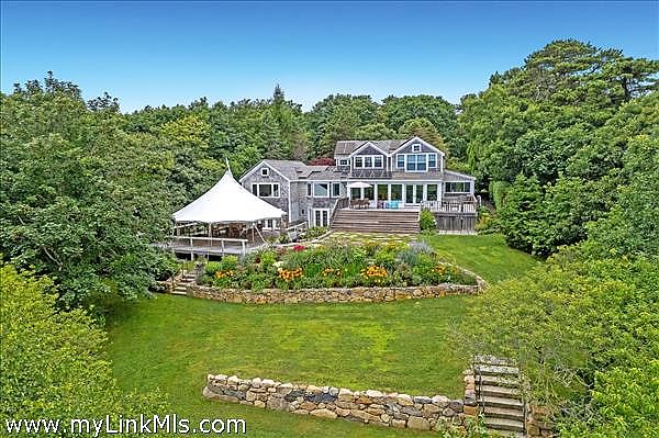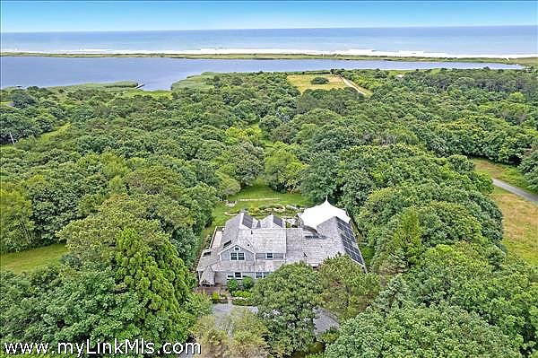 Commanding Pondfront Retreat with Private Dock and South Shore Views. This exceptional Chilmark residence offers an unparalleled blend of privacy, elegance, and modern comfort. An original Tom Tate build, and renovated in 2018, the home exudes contemporary sophistication while embracing its serene natural surroundings. A private dock on Chilmark Pond provides direct access to the water, inviting you to enjoy peaceful mornings and breathtaking sunsets over the shimmering South Shore. Just follow the most gorgeous manicured pathway, an iconic vineyard staple, to your own private dock and launch across the pond to your private south shore beach lot. The property is enveloped by more than 7 acres of abutting conservation land, ensuring a tranquil and secluded setting. The grounds are a masterpiece, featuring meticulously designed gardens that enhance the property’s timeless allure. The expansive first floor makes entertaining a breeze with wide open living spaces, and also allows for quiet work to take place in the private office. The ground level floor features more relaxed living space and wet bar with access out to the gorgeous back yard and path to the pond. The second floor is dedicated entirely to a luxurious primary suite with two private bathrooms—a sanctuary that boasts expansive water views and refined finishes. This is more than a home; it’s a lifestyle defined by elegance, comfort, and beauty. Separate guest house property also available, please inquire.
