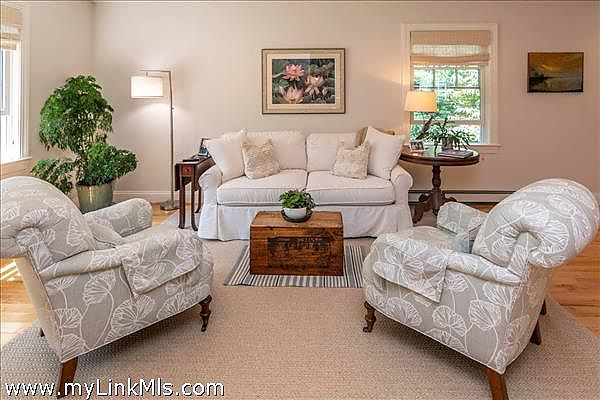 CLASSIC STYLE MEETS TIMELESS CHARM. Located at the end of a lightly traveled lane and surrounded by stunning gardens and stone retaining walls, this meticulously maintained home provides a modern and spacious environment for comfortable island living. Upon entry, the home welcomes you with an open and bright layout, featuring sleek finishes and an abundance of natural light. The gourmet kitchen is a chef's delight, featuring Kitchen Aid® stainless appliances and a center island with counter seating that seamlessly connects with the living and dining areas, creating an ideal space for entertaining or everyday living. A cozy Family Room/Den is also located on the main floor, with handsome custom built-ins and pocket doors for quiet and privacy. The second-floor primary bedroom is a private sanctuary, complete with a walk-in closet and an en-suite bathroom featuring contemporary fixtures and a spacious walk-in shower. The two additional bedrooms on the second floor offer versatility and comfort, accommodating various needs and lifestyles. With a 4-bedroom septic, the walk-out Lower Level offers an ideal are for adding a bedroom, home office, in-home gym and/or recreation area. Outside, the meticulously landscaped yard provides a serene escape for outdoor relaxation and gatherings, offering a private retreat for enjoying the beautiful surroundings. Conveniently located near nature trails that lead to the Lagoon and within a mile of Vineyard Haven with dining, shopping, and entertainment options, this home offers the perfect combination of modern living and convenience. Schedule a showing today and envision your future in this charming Vineyard Haven residence. *Note: The property is located in the Lagoon Pond watershed and will require an upgrade to an enhanced nitrogen septic upgrade. An approved septic plan is included in the purchase price.