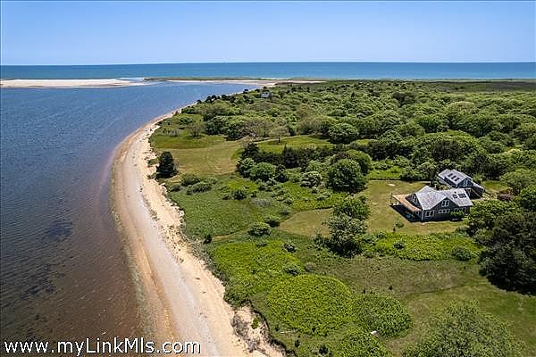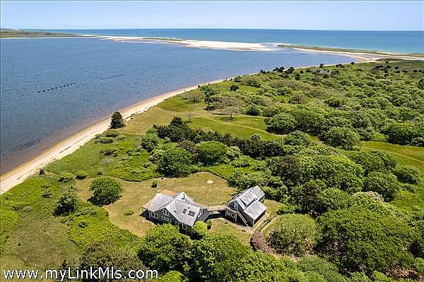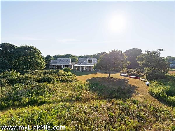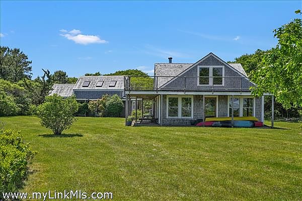 Nestled along the beautiful and tranquil shoreline of Tisbury Great Pond and surrounded by a stunning natural environment of water, sand and sky, this is an unparallelled beach house experience on the south shore of Chilmark. The five-bedroom home consists of a three-bedroom main house connected by walkways to a two-bedroom guest wing with studio space above, all with spectacular water views including from ground floor. The yard surrounding the house is a meadow like setting with an easy grassy path out to the sandy pond shoreline. Play on the pond with paddleboards, kayaks, small motor boats and sailboats, and quickly cross over to the ocean beach. Although little ones love to stay on the pond shoreline at the house to explore and swim in these safe calm waters. The existing buildings and six-bedroom septic await your vision. Abutting conservation land on two sides. Access to Chilmark beaches as well. This is a rare offering with the combination of water frontage on the pond, proximity to the ocean, conforming acreage and panoramic views. Create your own private sanctuary for your family in this wild and beautiful, natural setting.