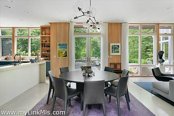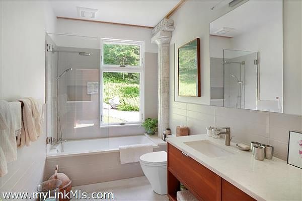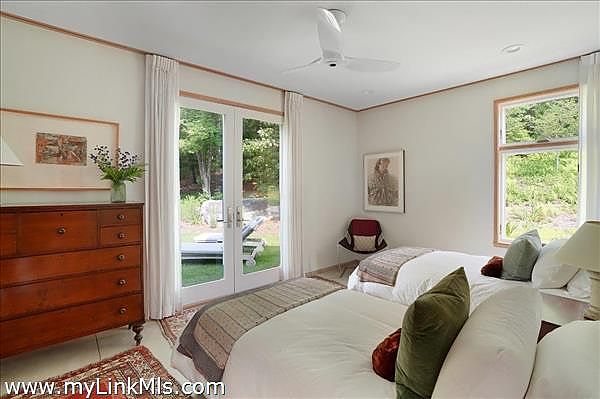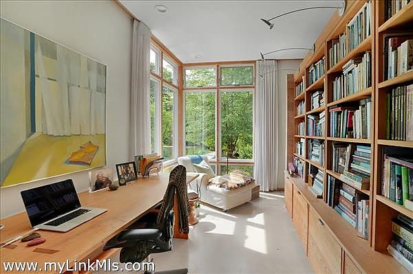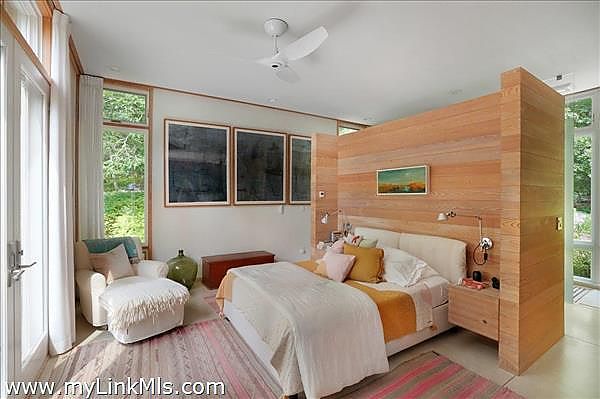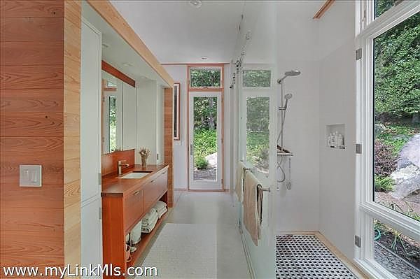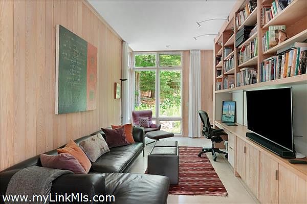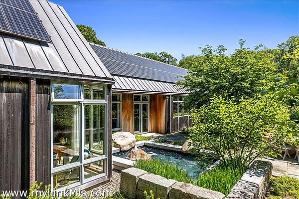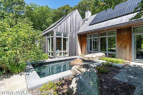This exceptionally elegant and tranquil home in Seven Gates Farm combines contemporary architectural design with timeless high-end features for Vineyard casual, nature-inspired living. Extraordinary and rare, this move-in ready three-bedroom home with six-bedroom septic system sits on an oversized 5.3-acre parcel in Chilmark. This thoughtful layout has an easy flow, soothing tones with cypress wood paneling and accents, and combines open living spaces with separate, more secluded areas such as the TV/media room, private multi-room primary suite and private guest wing. The great room features floor to ceiling walls of windows creating a transfer of light and air from both sides of the space. The primary suite includes a separate office space, expansive walk-through closet, an architectural feature wall defining the sleeping space, beautiful bathroom of wood and glass, and access to the outdoors. Upstairs you'll find an expansive bedroom currently used as a gym and office, a cedar closet room and a large unfinished space for potential expansion. The airy guest bedroom wing is found off the entryway and includes French doors for access to the yard, built-in ceiling curtain tracks and art hanging ledges, and a full bathroom with soaking tub. The interior seamlessly blends into the exterior spaces. The artistic stonework of the front yard patio and water feature lead beyond to gardens, lawn and a trail through the wooded areas of the property. This property is part of Seven Gates Farm and enjoys the benefits of miles of coastline including three distinct beaches and two docks, 1000 acres of common land with trails weaving throughout, two tennis courts and a lovely community of neighbors. Note: 2% fee to Seven Gates Farm at closing in addition to purchase price and Land Bank fee.