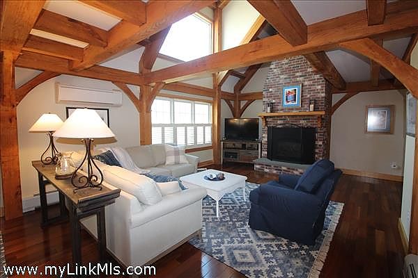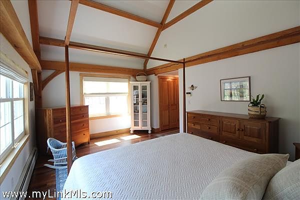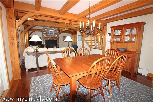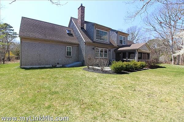 This beautifully maintained post and beam home situated at the end of a quiet lane in the Katama area has just become available. When you enter the home, you get a sense of the quality and care taken to preserve this truly special property. The entrance foyer opens into a comfortable living area with a handsome fireplace, stairway to the second floor and half bath with full laundry. The dining area has access to the enclosed screened-in porch, and the fully appointed kitchen boasts countertop seating and a centered butcher block Island. The side entrance from the outdoor bluestone patio opens to the first-floor hallway and the den/office. The other side of the first floor is a hallway to the primary full bathroom and bedroom with cathedral ceiling. The interior of the house is graced with red oak, post & beam design and complimented with natural pine interior doors and wood trim throughout. The handsome Brazilian Teak flooring adds to the charm of this first floor. The second floor is accessed by an attractive pine staircase that leads to an open sitting area. There are two bedrooms with a shared bathroom. New Andersen windows installed in May of 2025. The perfect vacation home or year-round residence is equidistance to downtown Edgartown or the popular Katama South Beach.