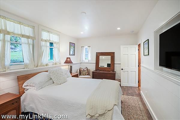 Outdoor living is just as enticing, with an oversized deck featuring a hot tub, outdoor shower, and a lower patio area. The expansive lawn is perfect for leisurely activities and includes a newly added Bocce Court. With a 2-acre lot, there’s potential for a pool or ADU with permitting. Additionally, a private attached accessory apartment with its own entrance provides fantastic options for guests or rental opportunities.