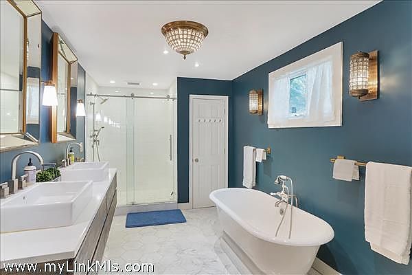 Step inside to discover over 4,900 sq ft of recently renovated living space. The home boasts 5 bedrooms and 4.5 bathrooms, including a stunning chef's kitchen that will ignite your culinary creativity after visits to the nearby farm stands. Whether hosting gatherings or enjoying a quiet evening at home, the oversized family/media room, separate dining room, sunny living room, and game room offer ample space and comfort.