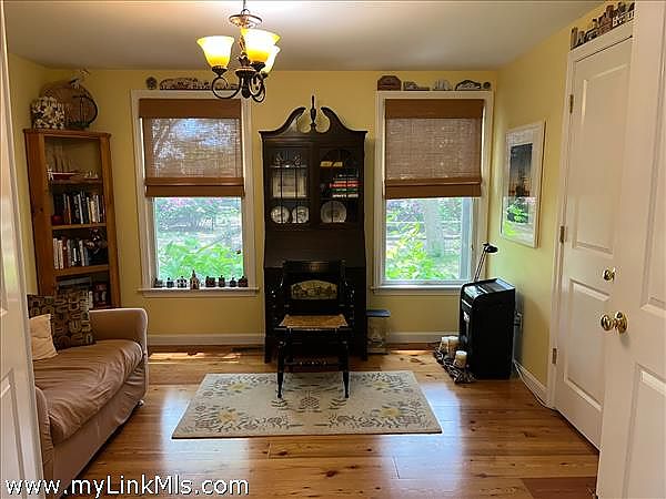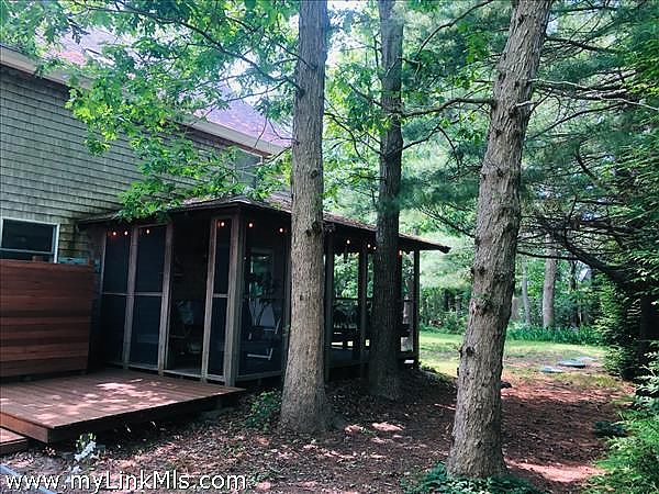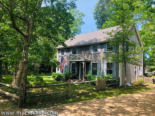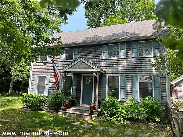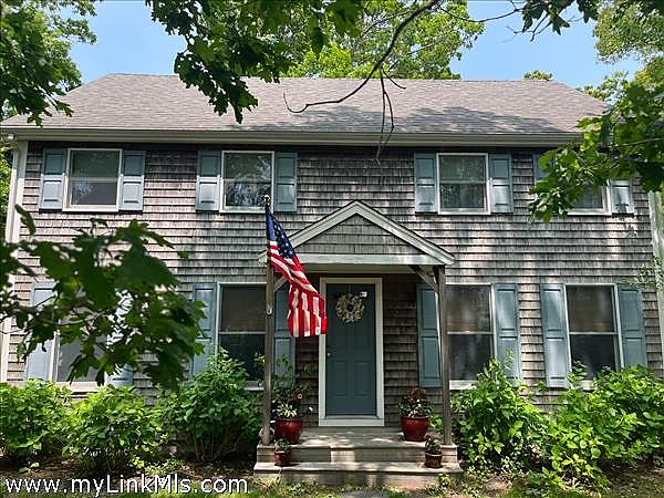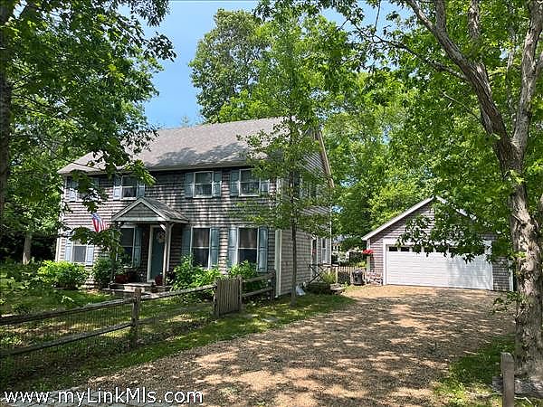Nestled in a quiet Oak Bluffs neighborhood, this colonial-style home and its surrounding area gives the feel of being up-Island. The well-kept home was built in 2008 and is move-in ready. Located 1 mile to Circuit Avenue, and less than a mile to both the Oak Bluffs School and the Oak Bluffs Library, the property is also conveniently close to a bus stop and the bike path. Its many features include an open floor plan downstairs, with kitchen, dining, and gas fireplace-enhanced living area perfect for entertaining. A separate office, or formal dining room, and a full bathroom, round out the first floor, in addition to a large, screened-in mahogany porch. On the second floor, find the primary bedroom with en suite bathroom, an additional bedroom, full bathroom, and open loft area currently being used as an office. The spacious yard features old-growth trees and is fully fenced-in for a dog lover sanctuary. A Generac full house generator was recently installed, and the home has FHA propane heat and central AC. There is also a two-car garage with an upstairs storage area. The property is a must-see hidden gem.