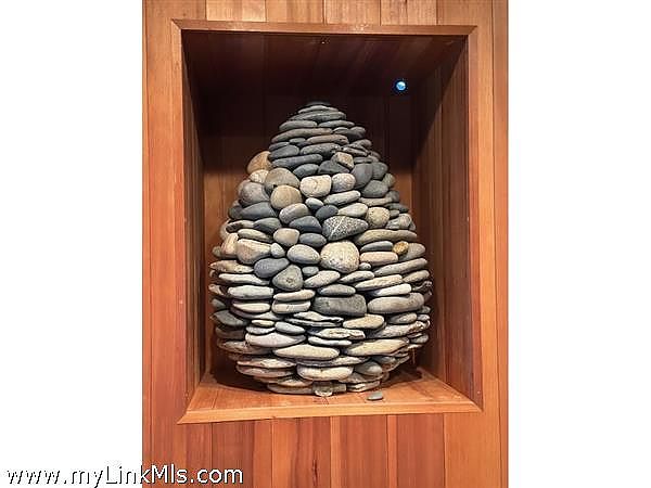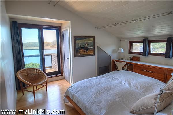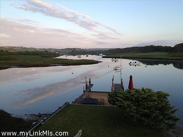 Magical waterfront Quitsa pond cottage with private dock. This home has the most spectacular views including sunsets and an intimate relationship with the charming and timeless waterfront at Quitsa Pond. Designed with the setting in mind this sublime piece of architecture has wonderful spaces, fantastic detail and so much packed into a smaller home. Landscape design by Edwina von Gal accentuates the simplistic beauty of this propery. A unique and inspirational built-in art installation by Andy Goldsworthy adorns the northeastern wall of the living room. A fireplace created with slate roof tiles unlike any other is built into the southwest wall. Custom Will Parry windows and doors throughout with giant floor to ceiling glass doors that slide wide to join the inside and outside of the home bringing the natural beauty of the area into the house. Step outside and onto your private dock with power and water, or walk down your boat ramp into the warm waters of the pond for a swim, kayak or paddleboard adventure. A custom staircase influenced by Frank LLoyd Wright has built-in book cases and metal work by artisan Whit Hanschka which brings you to the upper floor where there are 3 bedrooms and 2 baths. 2 of the bedrooms open out onto a small deck overlooking the pond and all have views of the water. This home is cozy with radiant floor heat under the tile floor