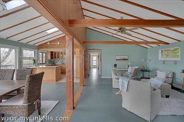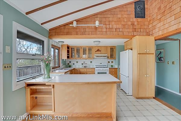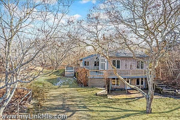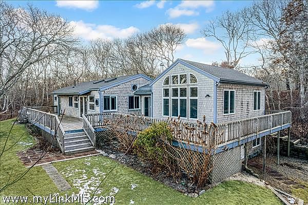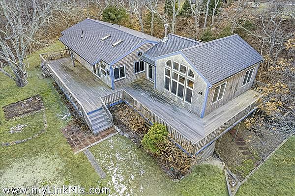 Aquinnah Retreat, set on a private 1.1-acre lot! This beautiful single-family home was lovingly built & cared for by one family, offering peaceful surroundings & beautiful ocean views, now, move-in ready for new owners to relax & put their own personal touch to. The wrap-around deck provides a stunning viewpoint to take in the coastal air & setting. Inside, the kitchen & dining area are filled with natural light thanks to skylights and large windows, flowing into a cozy sitting area with a fireplace—perfect for gathering with friends and family. The left wing of the home includes three bedrooms, a full bath, and a half bath. On the opposite end, a spacious great room features cathedral ceilings, oversized windows framing ocean views, and a second half bath with laundry hookups. The lower level is a walk-out that includes a bathroom and bonus room, offering potential for living space, guest accommodation, or rental income. A heated studio, two storage sheds, and an outdoor shower add to the home’s flexibility. New roof (2021), Title 5, & Smoke passed—this special Aquinnah property is ready for its next chapter!