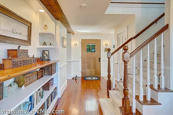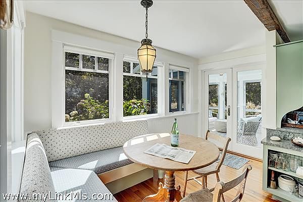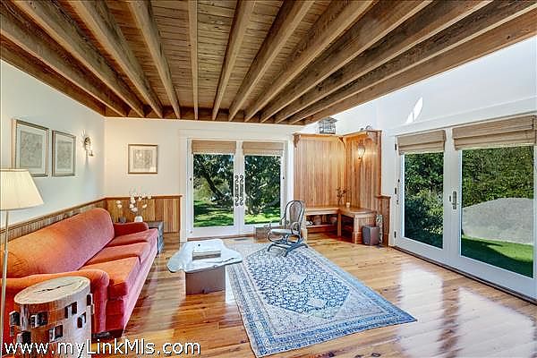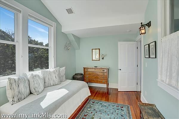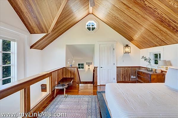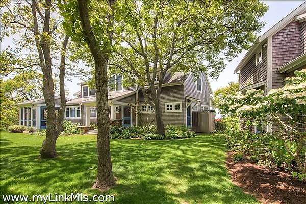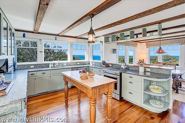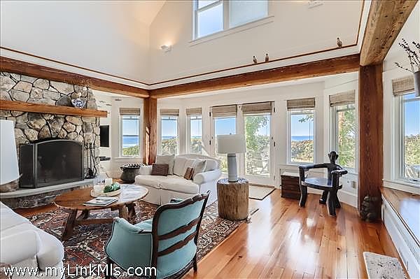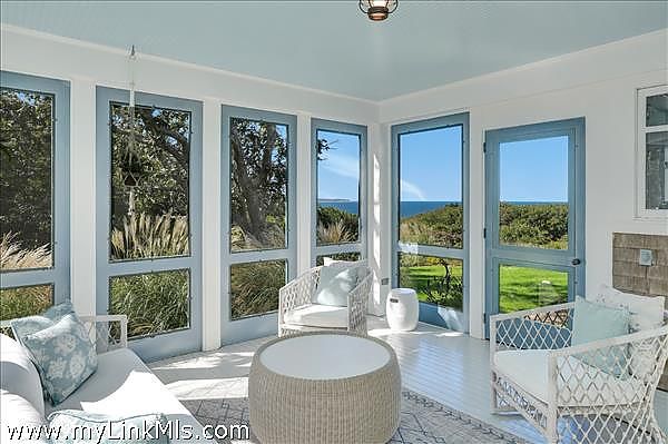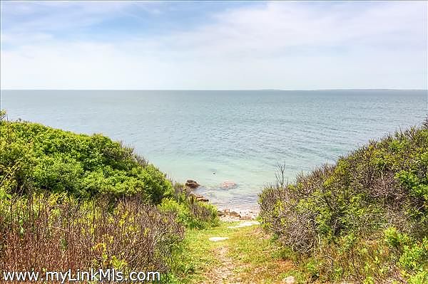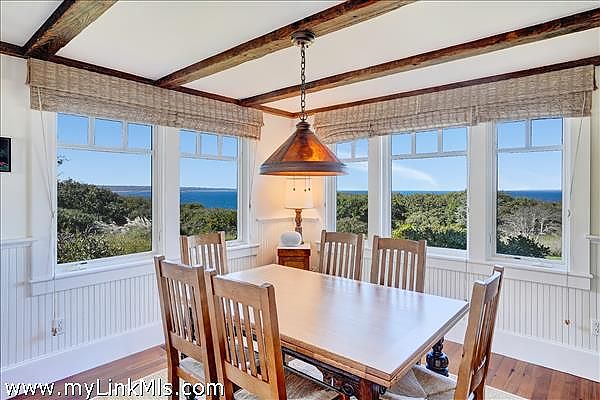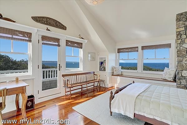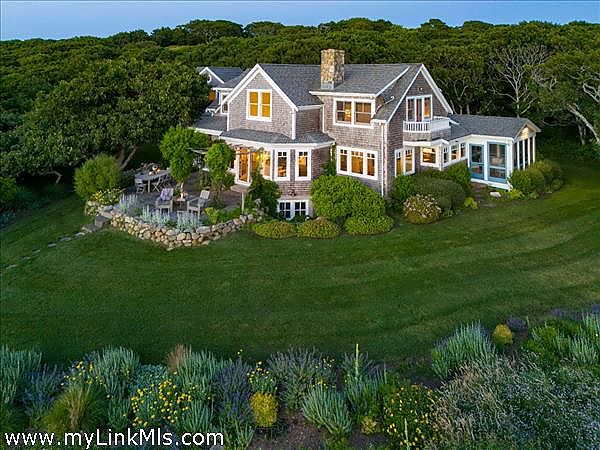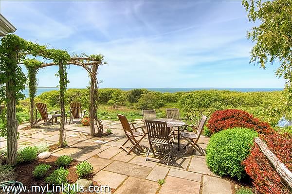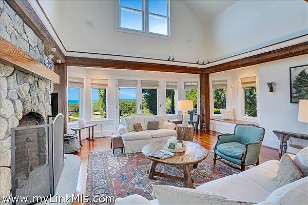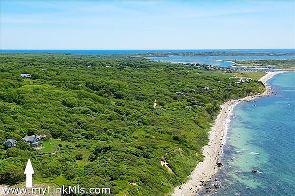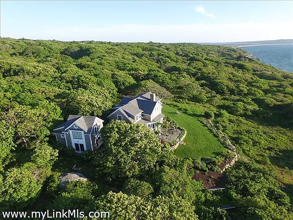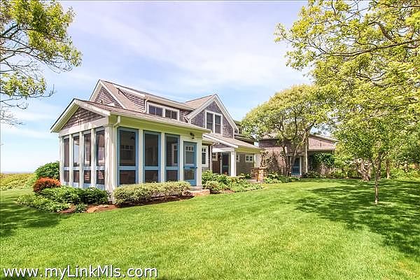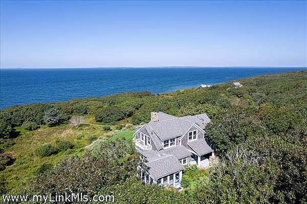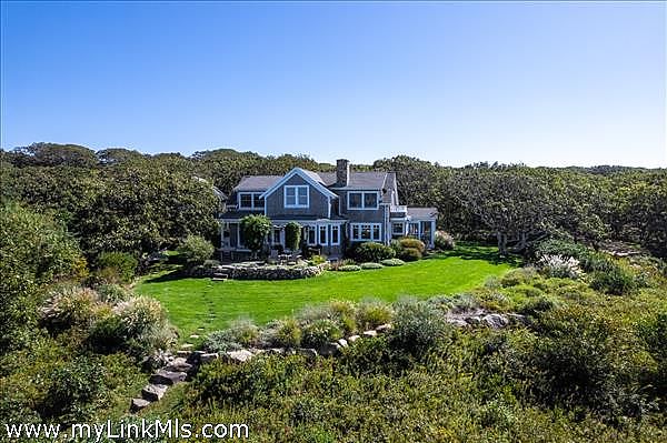 Set on 5.6 acres of pristine land, this custom-built 4-bedroom, 2.5-bath main residence, with a detached 1-bedroom, 1-bath guest studio, offers unparalleled privacy, natural surroundings and sweeping views of Vineyard Sound. Nearly every room captures breathtaking water views and unforgettable sunsets, best enjoyed from the expansive stone terrace, screened porch, or the private balcony off the primary suite. Craftsmanship and character define this finely constructed home, featuring salvaged heart pine floors, reclaimed beams, and other thoughtfully curated details throughout. A generous building envelope allows ample room for expansion, making this property a lasting investment as well as a beautiful home. Surrounded by mature trees, lush gardens, and open lawn, this is a place of quiet beauty and natural elegance. A short stroll through the grounds leads to 340 feet of private waterfront—perfect for peaceful swims and tranquil moments on the shore. Enjoy the nearby charm of Menemsha Village, a leisurely walk away.