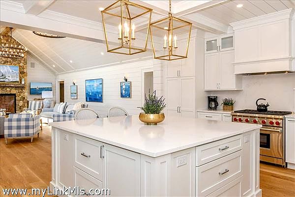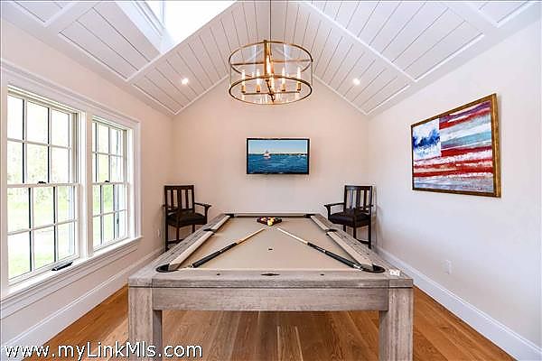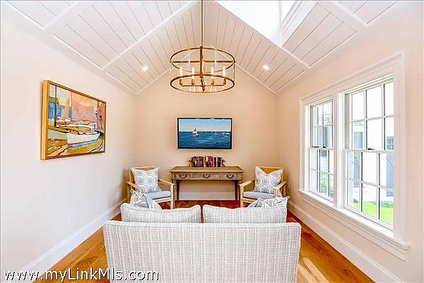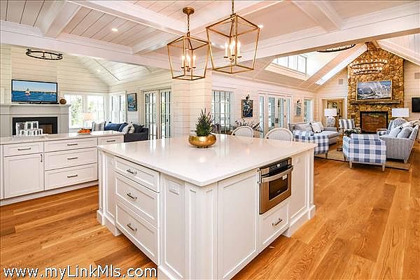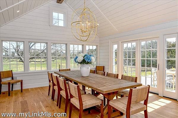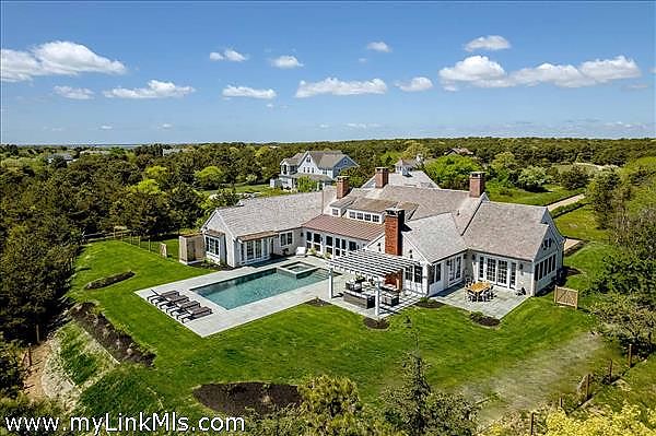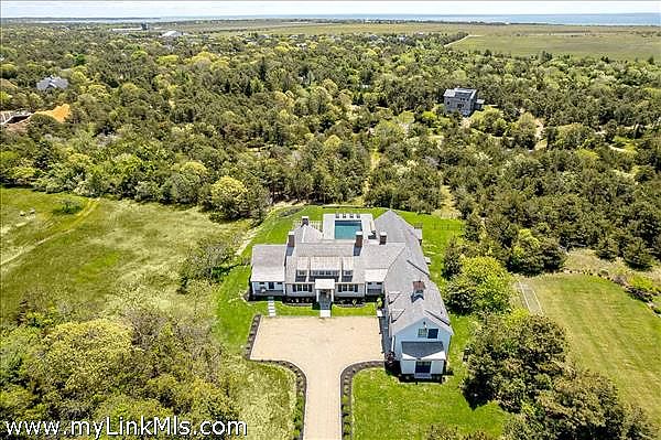LUXE COASTAL RETREAT IN KATAMA. Sited at the end of a long private drive, amid a bucolic 1.5-acre meadow setting and lush perennial gardens, this elegant coastal retreat, designed by noted architect Patrick Ahearn, offers the epitome of luxurious living in Katama. The home’s timeless and charming character is highlighted by thoughtful, top-notch architectural details and styling throughout. There are vaulted ceilings in every room of the house with custom millwork and paneling, antique rough hewn beams adding charm and character. In addition, the well-designed floor plan features multiple living areas that open out to a central courtyard with bluestone terrace, an outdoor wood-burning fireplace and an 18'x36' gunite swimming pool with built-in whirlpool spa. The property is ideally located near South Beach, with the sounds of the ocean nearby. Furnishings, artwork and accessories are available separately for a turnkey and move-in ready purchase opportunity.