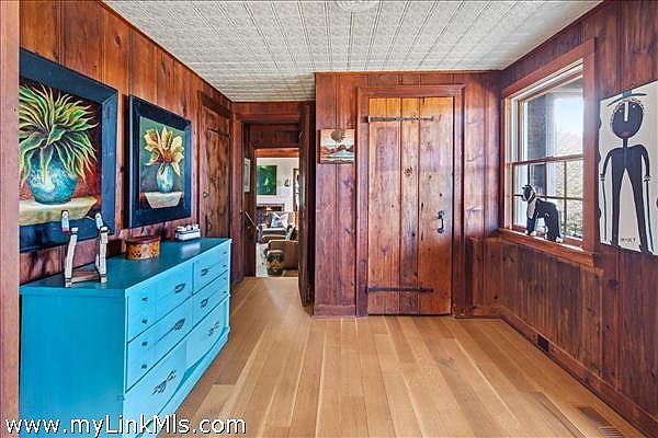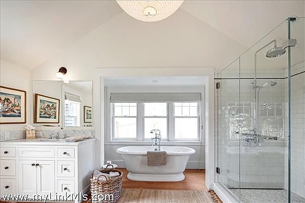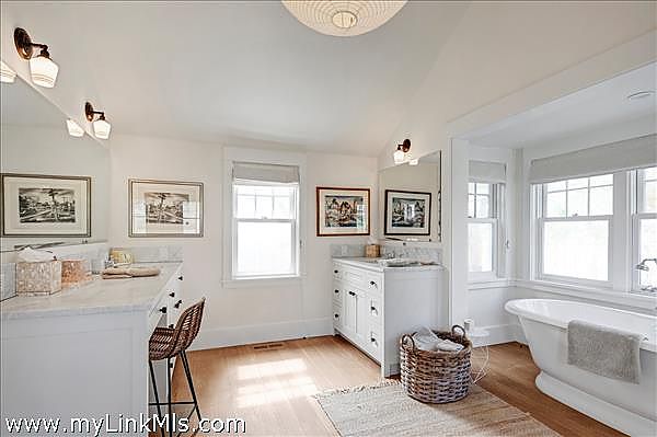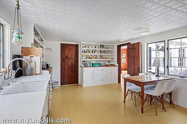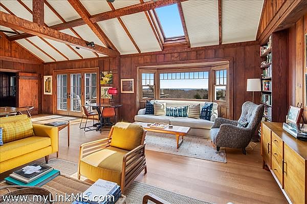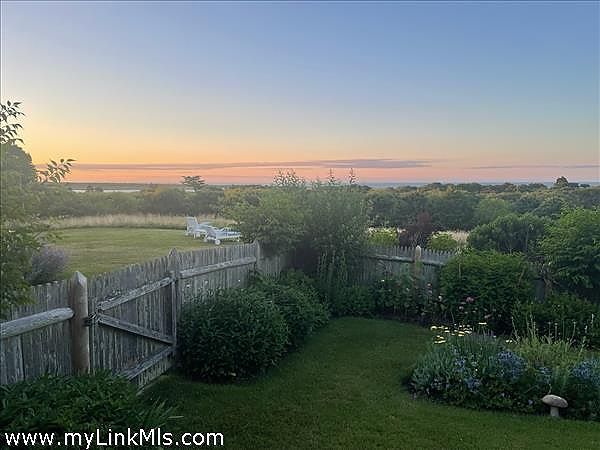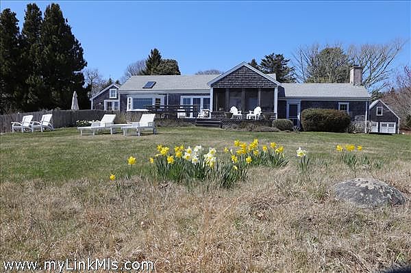 A 1930s-built home that has been remarkably updated to retain its historic charm while incorporating sophisticated and modern amenities. The house overlooks the Chilmark Great Pond and the Atlantic Ocean beyond. The Main House includes 3 bedrooms, 3 beautifully renovated bathrooms, a walk-in closet, a Pantry, a Library/Media room, a full basement, Outdoor showers, and a screened-in porch. The property includes a 2-bedroom Guest house, a Garage with a bedroom & bathroom above, a studio, and landscaped gardens. The property has had a pool designed, and there is walking access to the Chilmark Great Pond from the house.