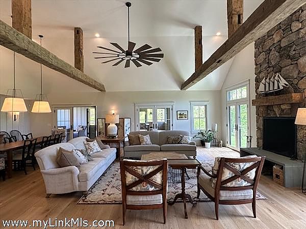 This spectacular and bright modern american farmhouse is perfectly sited to capture the varied scenic beauty that surrounds the farm. Built in 2021 with great attention to detail and materials, this home was created around gatherings and community with ample space for the extended family. The land has been lovingly curated into a place which can grow, generate and support those who want to have the best qualities of an island existance, minimize their impact and enjoy the literal fruits of life. The home has an 81 panel solar production system, granting it producer status and producing a surplus of energy that far surpasses the use. There are fruit orchards around the property that include fig, plum, apple, blueberry, cherry and more. (see addendum) The property achieved status as a Certified Organic Farm (USDA). The fantastic kitchen is designed for the serious chef with a huge 4 x 9 foot center island made of honed granite and a 48 gas range, subzero fridge and bosch dishwasher. The great room has a floor to ceiling rumford designed stone fireplace with cathedral ceilings, reclaimed antique beams, and a great floor plan that still maintains a sense of intimacy. Great mudroom with tons of built in that opens into the garage and the laundry room. Generator fed by 500 gallon buried propane tank provides security if weather goes bad. This is a really wonderful house and must be seen.