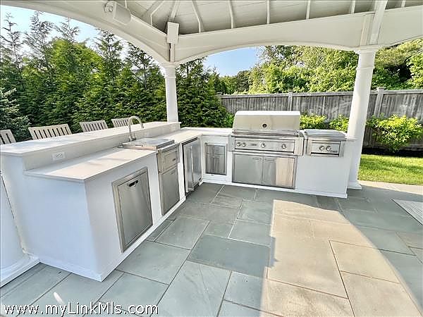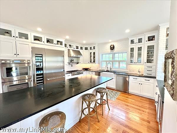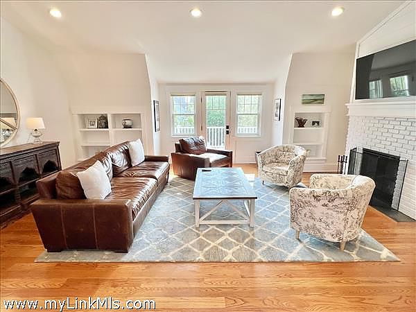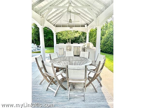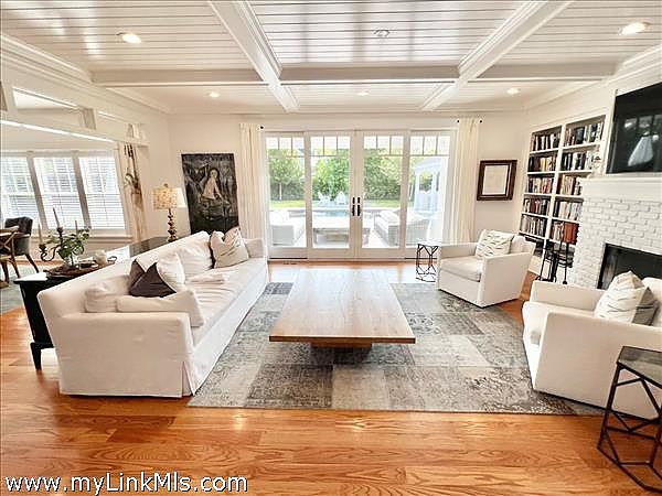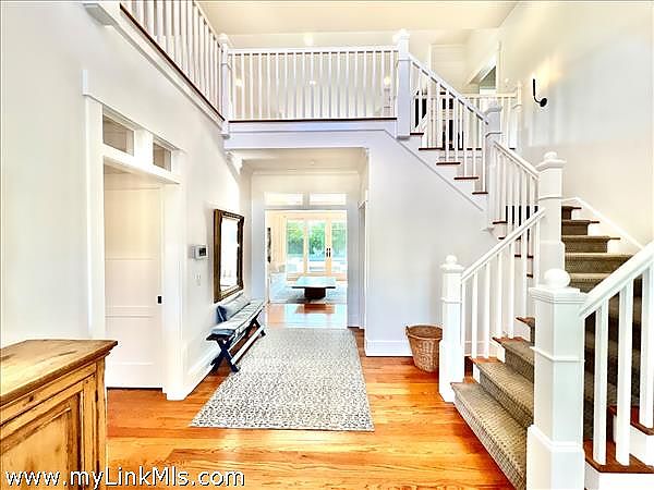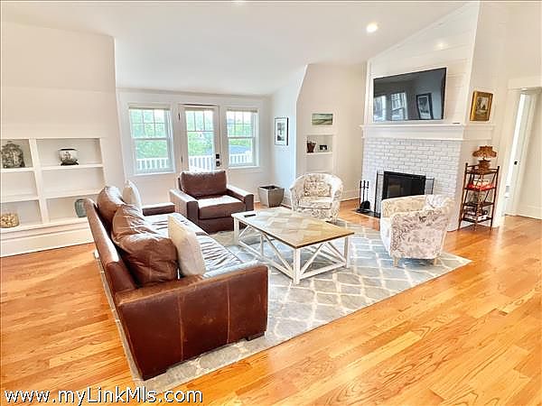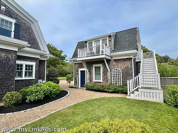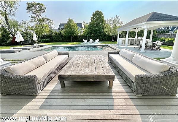 EDGARTOWN - KATAMA - A MUST SEE! Summer living at its best. A wonderful property, a luxury oasis, a retreat & personal playground, situated equidistant between South Beach & Downtown Edgartown, within walking distance to The Field Club. This prestigious location offers a perfect blend of classic Vineyard charm & modern sophistication. Main house features a dramatic, double-height entrance w/immediate view through the house to the pool. Open floor plan incorporates living room w/fireplace, built-ins on either side, coffered ceiling & glass doors leading to a fabulous backyard. Living room & dining room visually defined by a lovely transom window detail. Chef’s kitchen, outfitted with top-of-the-line Thermador Stainless appliances, 6 Burner gas stove, double ovens, large wine cooler, smaller drinks cooler, extra large refrigerator & an oversized soapstone clad center island ideal for entertaining…always in the kitchen at parties! Mudroom w/pantry. Ground floor Primary is a large sun-soaked bedroom w/coffered ceilings, Hessian feature wall & direct access to deck & heated pool. Complete w/walk in closet. Private bathroom w/comfortable soaking tub, glass shower & double vanity. Upstairs to second large living room, w/fireplace, small loft & deck overlooking pool. Two spacious bedrooms, each w/large en-suite bathrooms. Large finished basement w/Media Room, Games Area, bathroom & tons of storage. Detached Guest Suite above two-car garage. Beautifully appointed, offers a private fourth bedroom w/full bathroom, perfect for hosting visitors or providing a separate office or studio space, with deck! Backyard is just wonderful. Step out into a private resort-style oasis. Fabulous 16 x 32 Gunite, heated pool, expansive bluestone patio, multiple lounging areas for sunbathing, sitting & dining Al Fresco. Outdoor kitchen w/counter, bar stools & separate table & chairs, couches, picnic bench. Another patio, designed for conversations around a fire pit! Fully equipped outdoor kitchen, ideal for hosting summer gatherings, plus a mahogany-clad outdoor shower!. Two Car garage. Central A/C, Sonos. Beautifully landscaped yard w/varied plantings and trees, circular driveway & plenty of parking.
