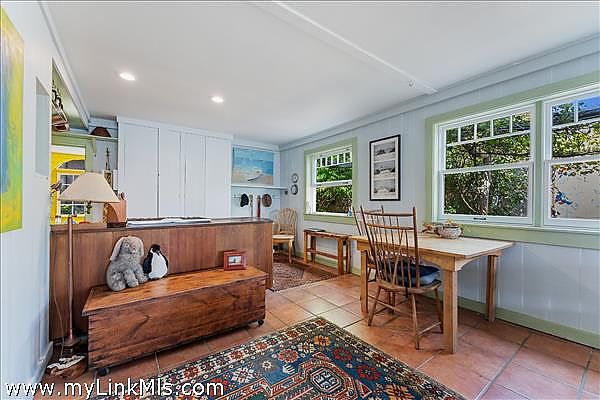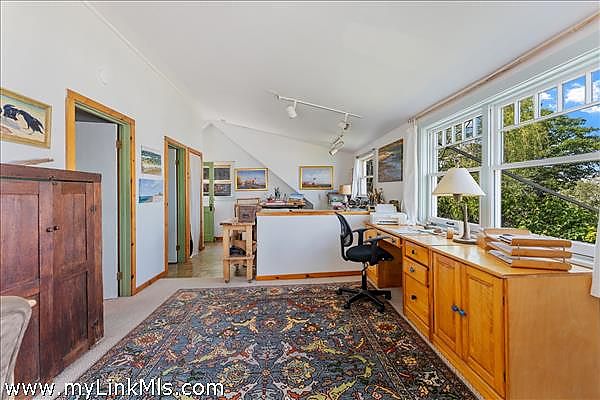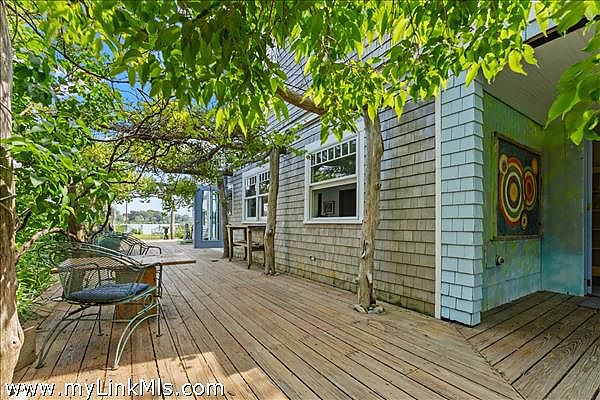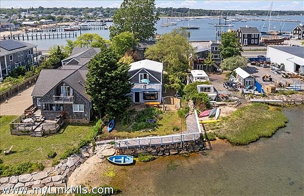Unique, waterfront property with amazing, 180 degree views of the lagoon from one side of the property, and the Vineyard Haven Harbor on the north side of the property. Zoned both residential and commercial, rarely does such a unique property become available. Elevated above Beach Road and the lagoon, there are 2 structures on the property. The first, sited on the lagoon with private access, is a year-round home with breathtaking, expansive sunrise views up and across the lagoon. This building has 4 bedrooms, two on the first floor and two on the second floor, 2 baths, one on each level, and 2 living areas. The upper level has a spacious deck overlooking the gardens and expansive views of the lagoon. The waterside patio has beautiful perennial gardens. There are many creative details throughout. Use the property as it is or take advantage of the work the sellers have completed to turn it into 3 condos: 2 residential condos and one commercial condo. The commercial building is currently used as an artist’s studio. Work needs to be done to meet building code regulations for a commercial operation. Mooring is transferable. Property is connected to the town sewer and town water.