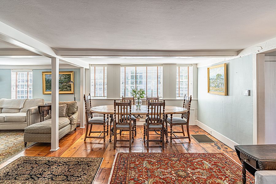 This inviting residence features 4 bedrooms, 3.5 bathrooms, and comfortably sleeps 8 guests. The main level offers a spacious living area with wide plank floors, a cozy TV alcove, and a charming dining room that seats six, plus an adjacent breakfast room with seating for four.