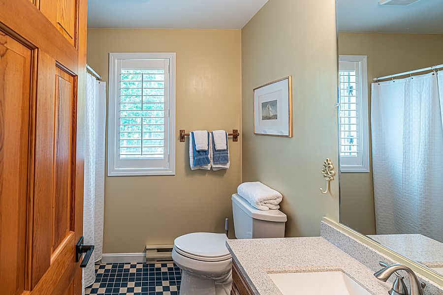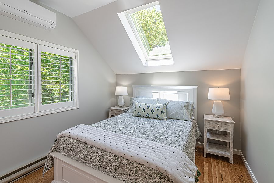 Bedroom 2: 1st Level, Queen, ceiling fan, A/C, shares hall bath