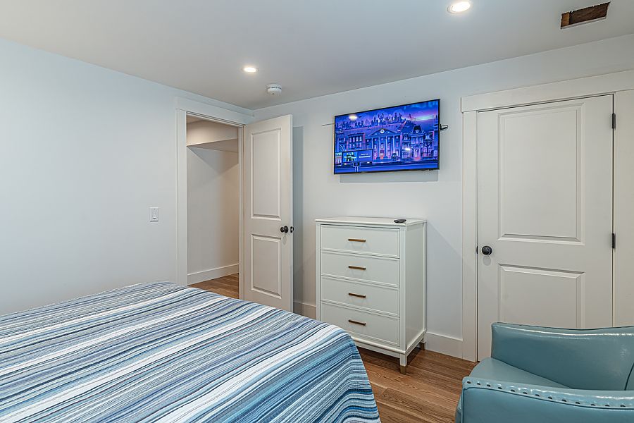 Bedroom 3: Lower Level, Queen, TV shares hall bath with bedroom # 4