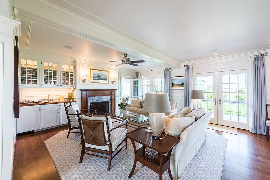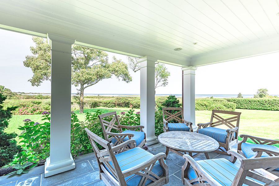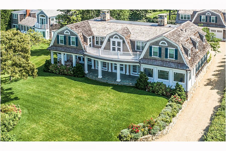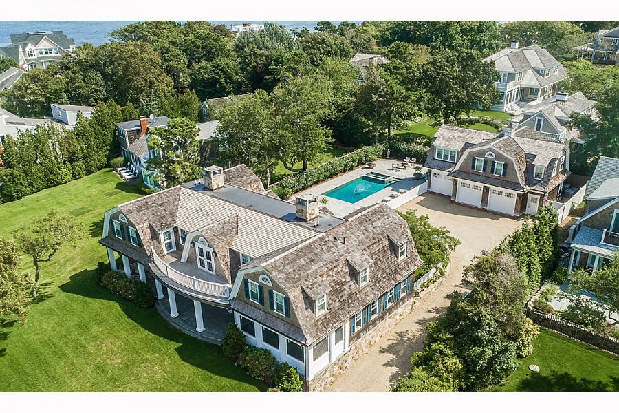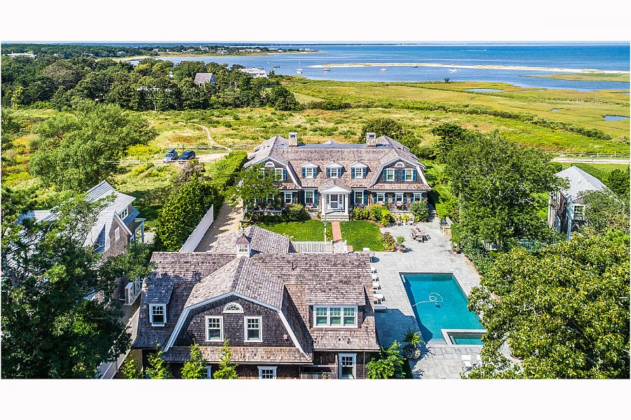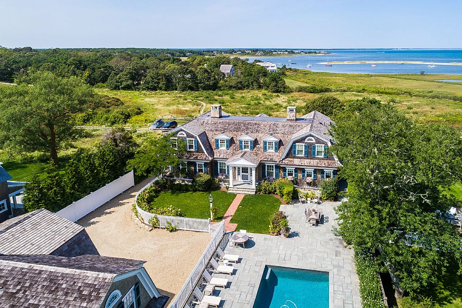 Luxury Coastal Gambrel Home with Pool and Carriage House.  This Eloquent Home was designed by architect Patrick Ahearn and features waterviews of Nantucket Sound from many rooms within the house, and from the open porch and screened porch areas.