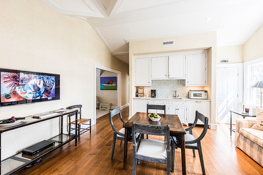 Additional Guest Quarters are located over the carriage house and include, living area with TV and kitchenette with sink, refrigerator and dishwasher.  Two additional bedrooms and a bath complete the guest area