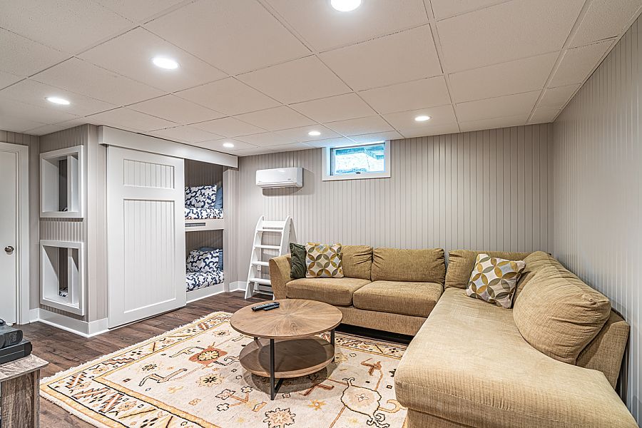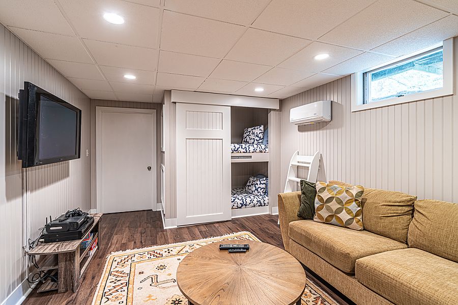 Lower Level: Overflow sleep space in TV room, Built-in Bunk Bed (2 Singles)Linens