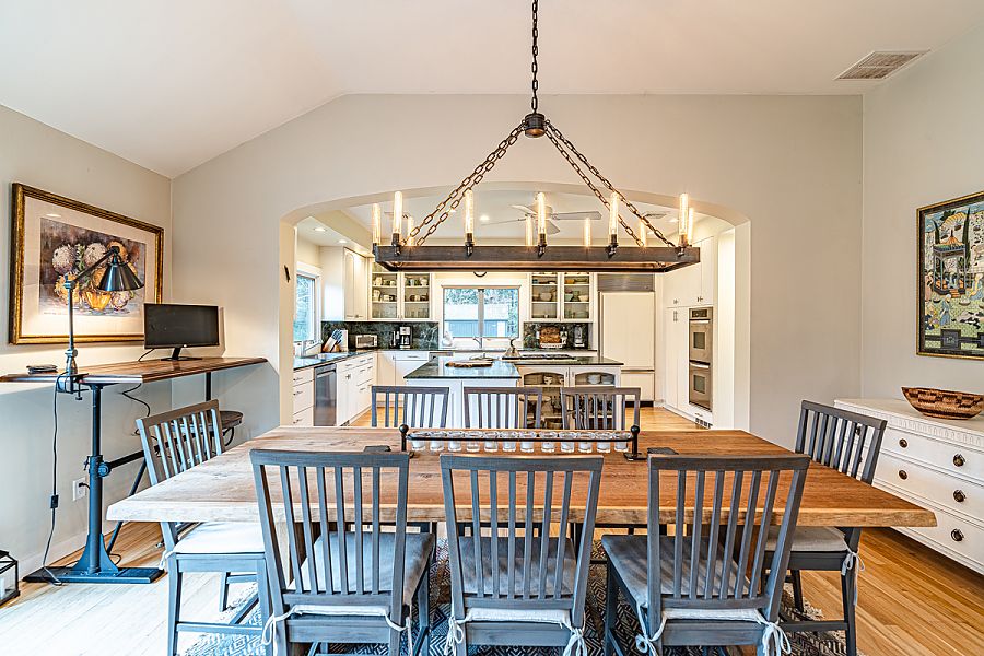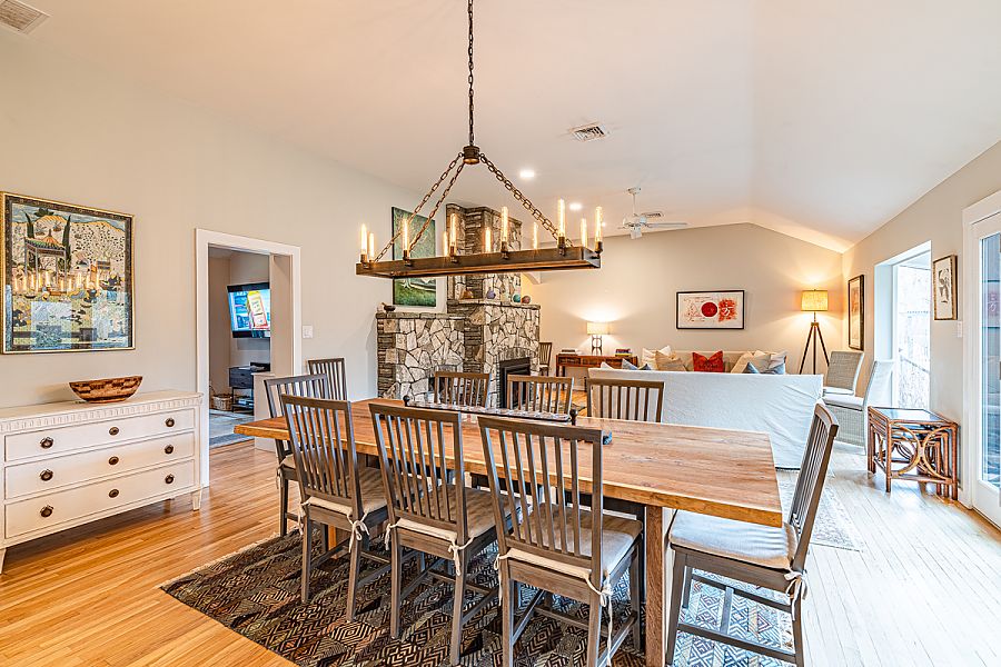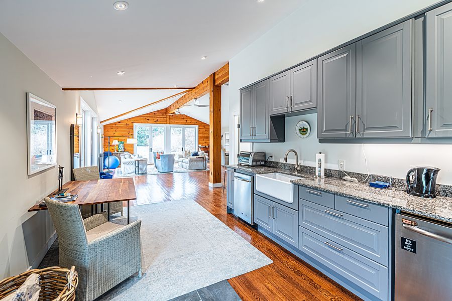 Bedroom 3: 1st Level, King, AC central, ceiling fan, shares hall bath with bedroom 2Guest House, 50 yards from Main House, Bedroom 4: 1st Level, King, window AC bath (shower only), Mini kitchen and dining table, large open living area
