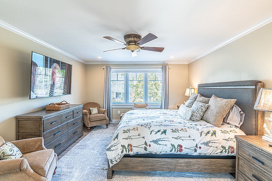 Occupancy Limit:8Bedrooms:4Bedroom Descriptions:Primary Bedroom: 2nd Level, King, TV, ceiling fan, bath (shower only)
