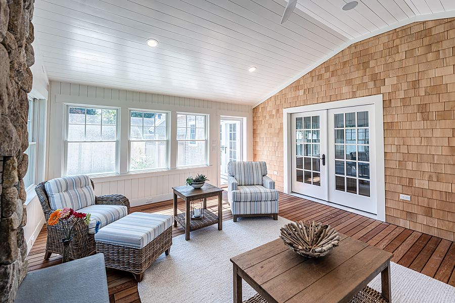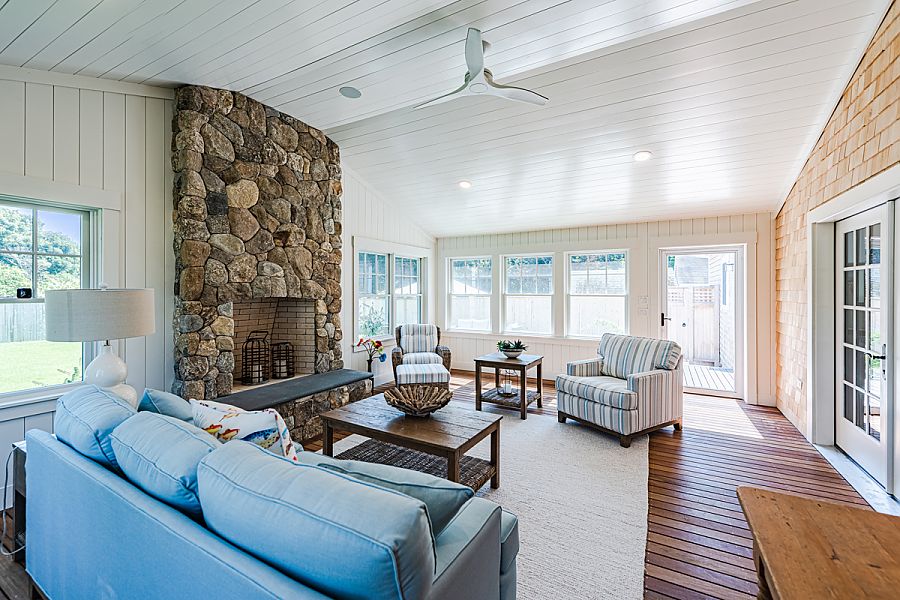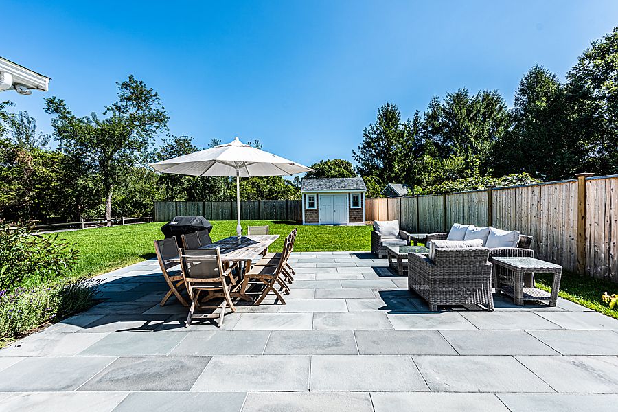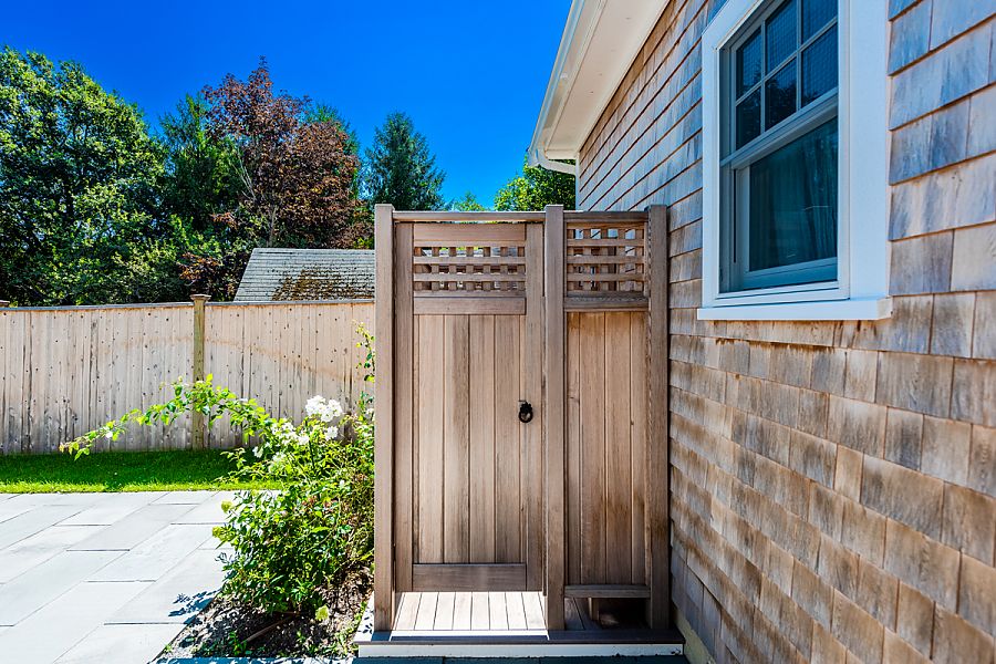 Off the kitchen, there is a spacious three-season room, providing a relaxing spot to unwind. From this room, you access a fenced-in backyard with a large patio, outside dining, gas grill, and a generous yard, perfect for outdoor activities and gatherings. There is also an enclosed outdoor shower, and storage shed that contains beach chairs and umbrella.
